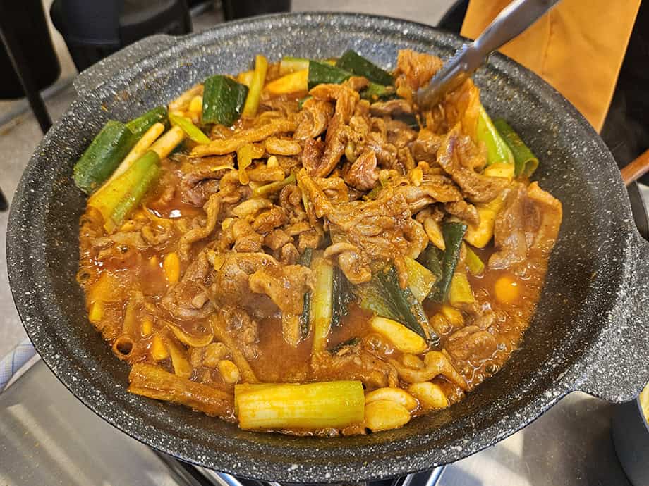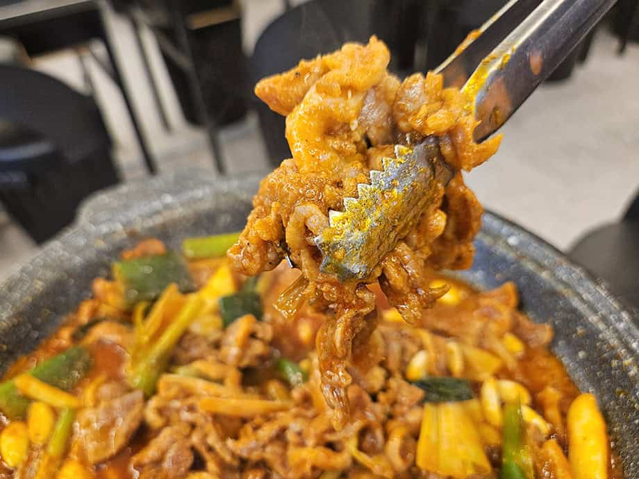 고기 양념이 매콤한 만큼 튀거나 옷에 배기 쉬워서 깔깔이 옷이나 앞치마를 꼭 입고 먹는 걸 추천. 맵찔이라면 처음에는 매운 정도를 확인하며 드시는 게 좋고요. 양이 푸짐하니 조절 잘해서 드셔야 한다는 점, 이런 퀄리티를 이 가격에 만나볼 수 있다는 건 정말 대박인 듯!
