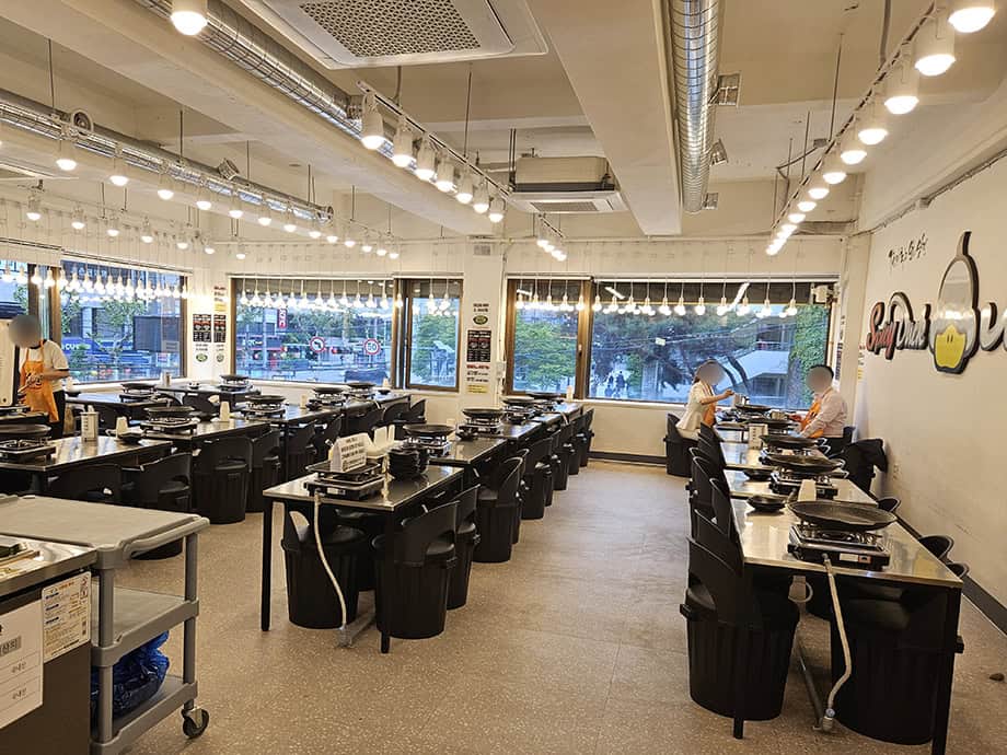 매장에 들어서자마자 잘 정돈된 실내와 깔끔함이 눈에 들어왔어요. 테이블마다 개별 버너가 있어서 조리도 편했고, 무엇보다 큰 통유리창 덕분에 시야가 탁 트여 분위기가 너무 쾌적했어요.