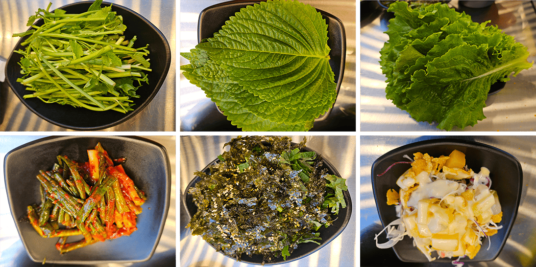남부터미널맛집 나오리주물럭의 하이라이트는 바로 셀프 코너! 기본 반찬부터 쌈채소, 파김치, 밥까지 직접 셀프바에서 가져오는 방식이에요. 라면 코너에는 열라면, 칼국수 사리까지 있어서 원하는 대로 끓여먹을 수 있어요.