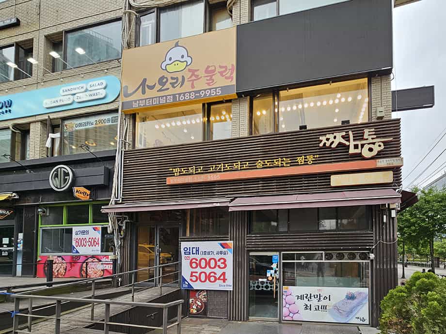 "나오리주물럭"은 남부터미널역 5번 출구에서 130여 미터로 도보 2~3분 거리라는 초 역세권에 자리 잡고 있어요. 한일시멘트 건물 맞은편에 위치하고 있어서 길 찾기도 엄청 쉽더라고요.