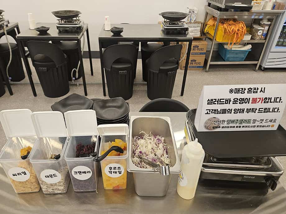 남부터미널맛집은 매장에서 직접 음식을 구워 먹는 셀프 방식인데요, 개인적으로 이런 점이 오히려 부담 없이 느껴지더라고요. 이집만의 특색 있는 섬세한 서비스 깔깔이도 준비돼 있어 옷에 냄새 배거나 양념 튈 걱정도 없이 마음껏 즐겼답니다.
