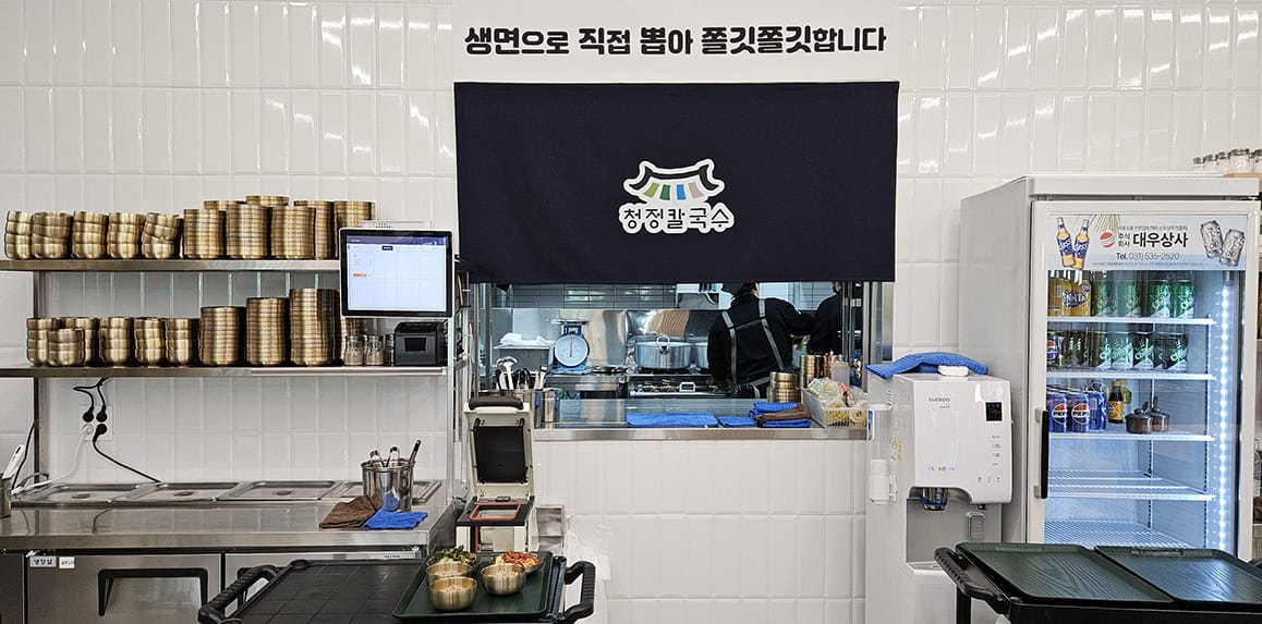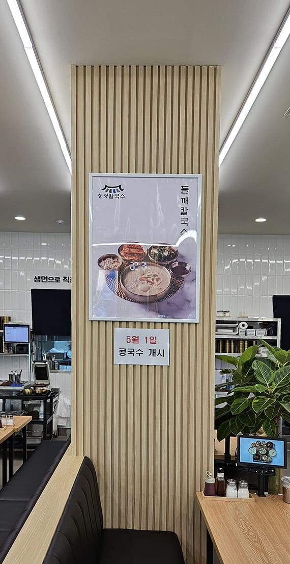 양주 덕정동 청정칼국수 식당문을 들어선 순간 딱 느껴지는 건 엄청 깔끔하고 모던하다는 점이에요. 새로 오픈한 곳이라 실내 조명과 인테리어가 모던했고, 좌석 배치도 넓어 붐비는 느낌 없이 여유롭게 식사할 수 있었어요.