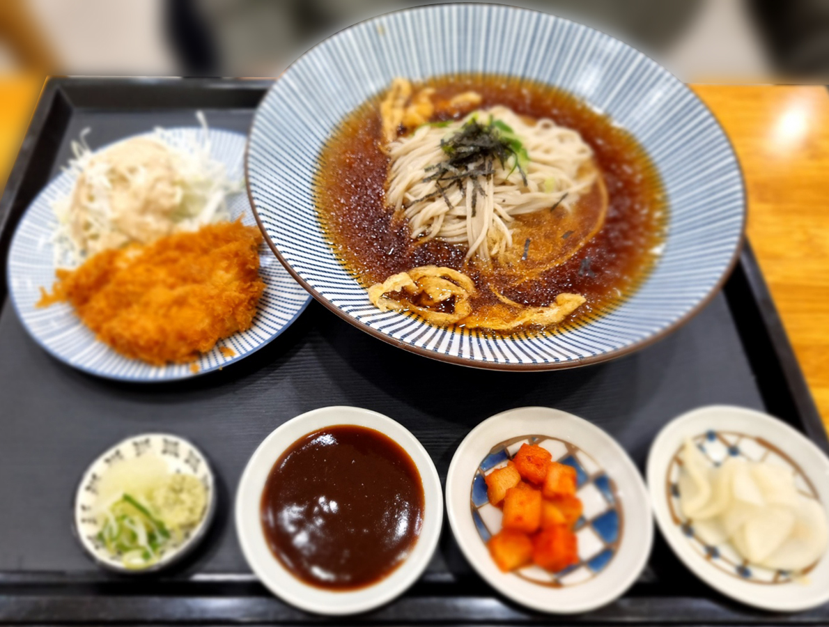 저희는 소바와 하프 돈까스가 함께 나오는 ‘냉소바정식’을 주문했어요. 무엇보다 원산지 표시가 확실히 적혀 있어 신뢰가 갔던 것도 포인트였습니다.