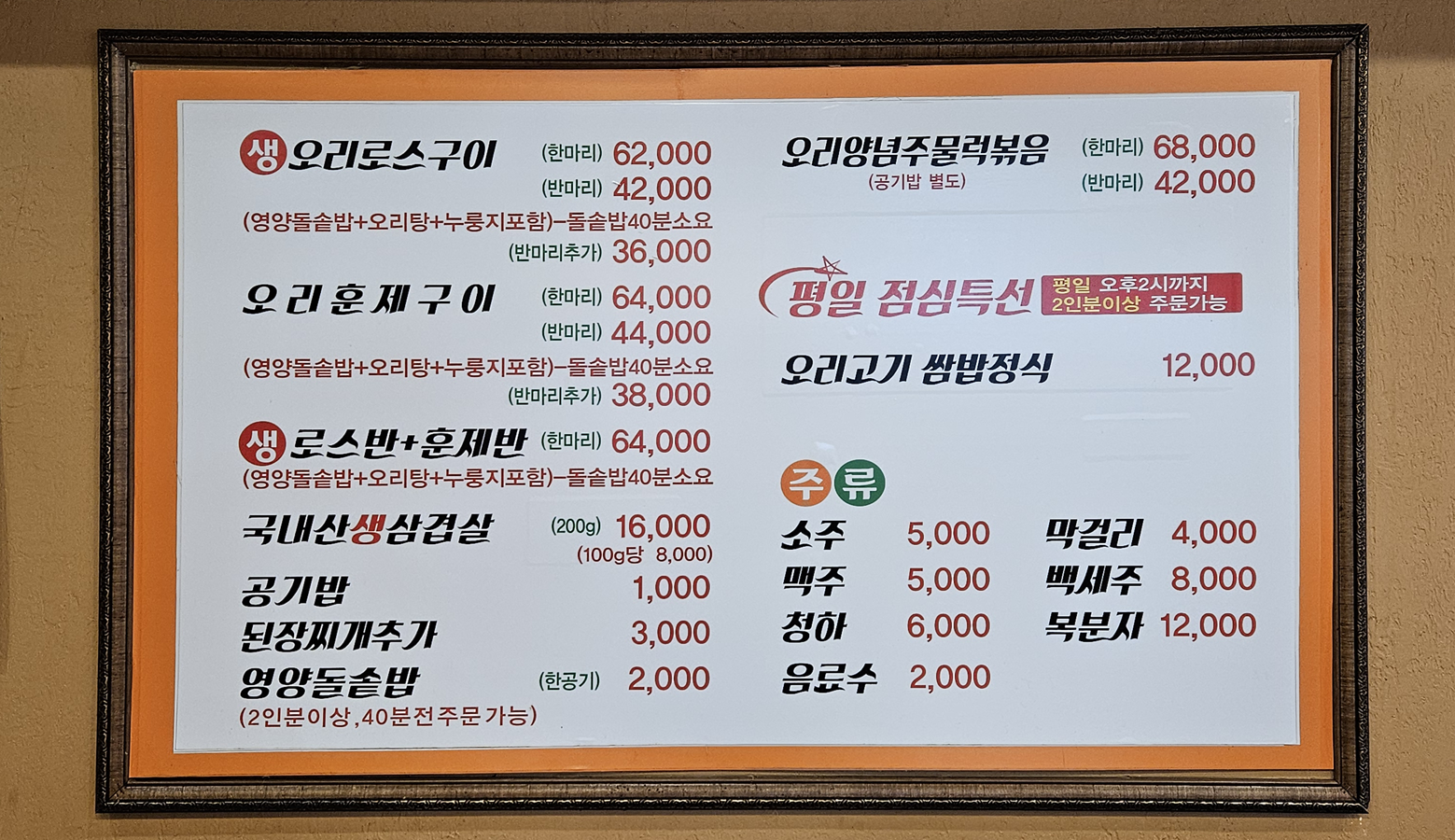 예전엔 오리구이를 먹어도 특유의 고기 냄새가 나서 맛이 아쉬웠던 경험도 있었거든요. 그런데 이번엔 "생오리로스구이 반마리" 2인 세트를 주문했더니 생각보다 편하고 맛있게 즐길 수 있어서 정말 만족스러웠어요. 그래서 오늘은 그 경험을 바탕으로 오리구이에 대해 솔직 담백하게 이야기해볼게요!