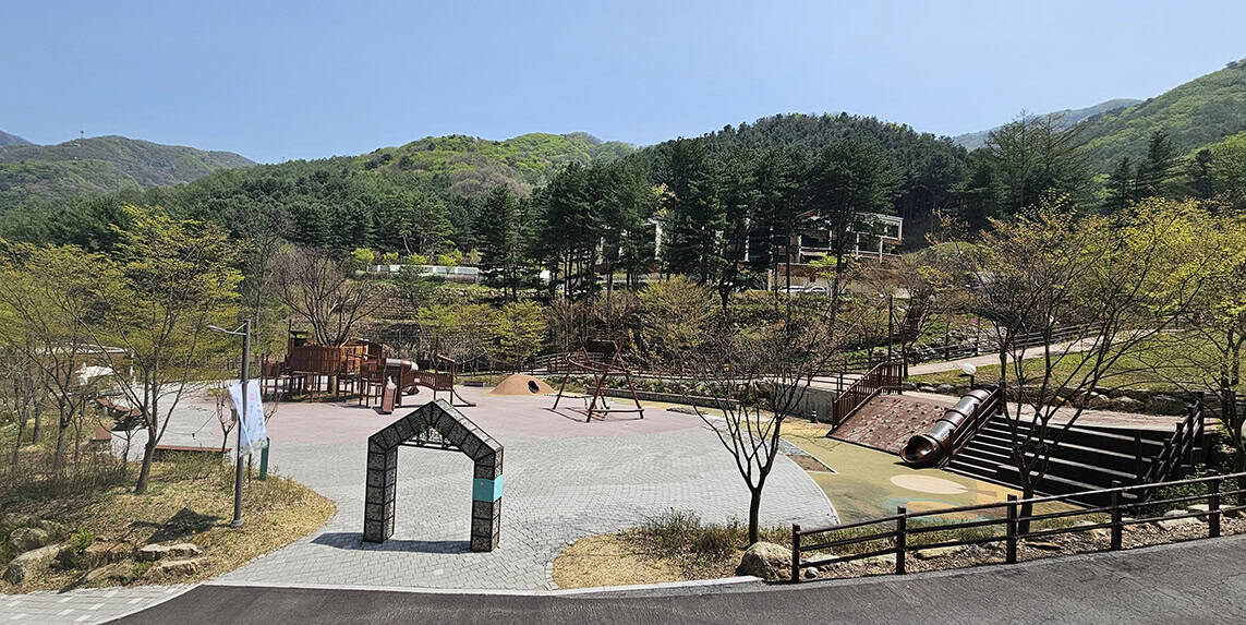 동두천 자연휴양림에 도착해 차에서 내려 첫발을 내딛는 순간, 맑은 공기와 새들의 지저귐 나무 냄새가 코끝을 찌르며 오감이 깨어나는 느낌이었어요. 고운 잔디마당과 산책로가 준비되어 있고 그곳에서 한눈에 보이는 풍경이 인상적이었어요.