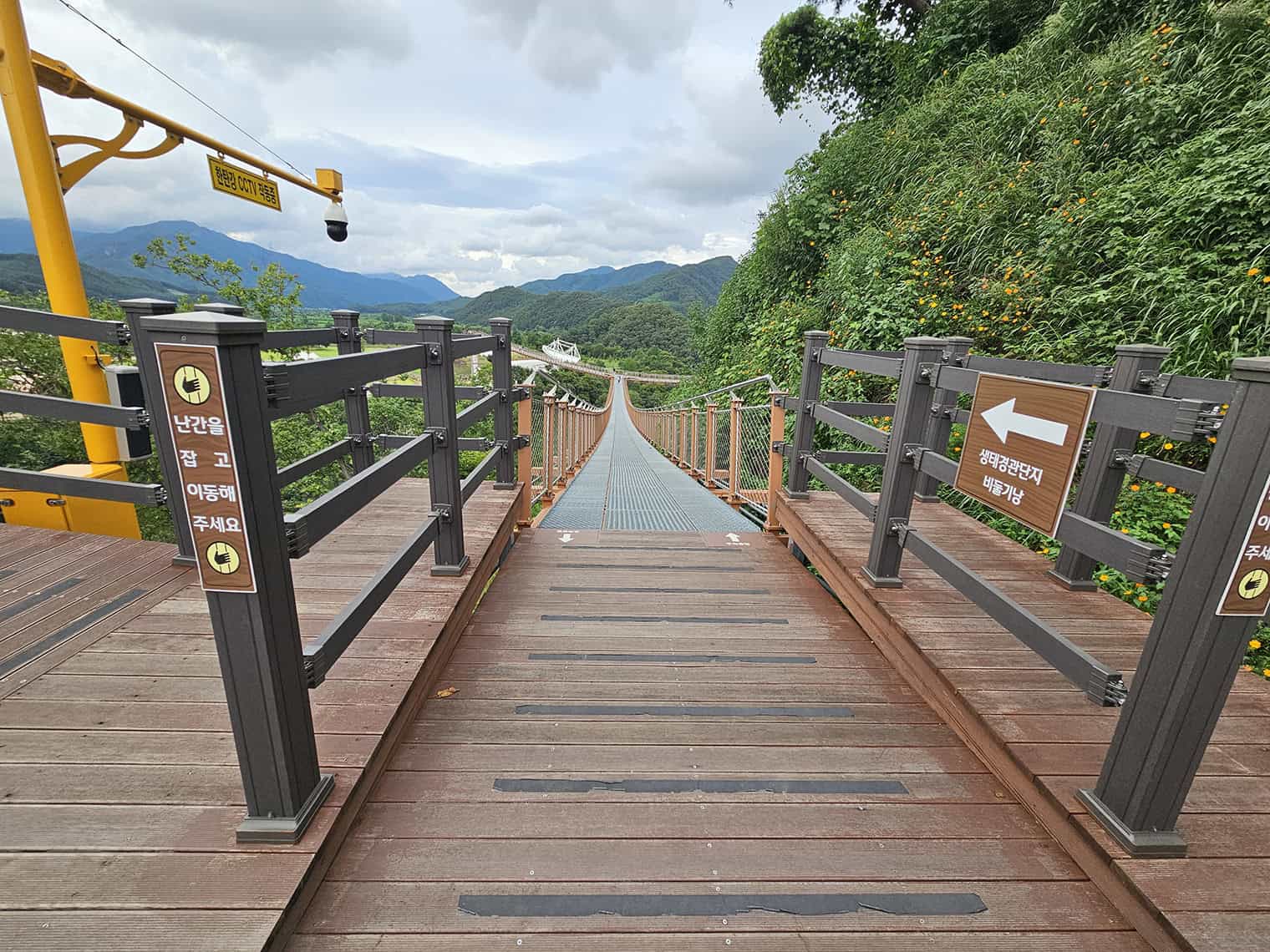 - 하늘다리와 Y형출렁다리 사이에는 작은 휴게 공간이 있으니 잠깐 쉬었다 갈 수도 있어요.