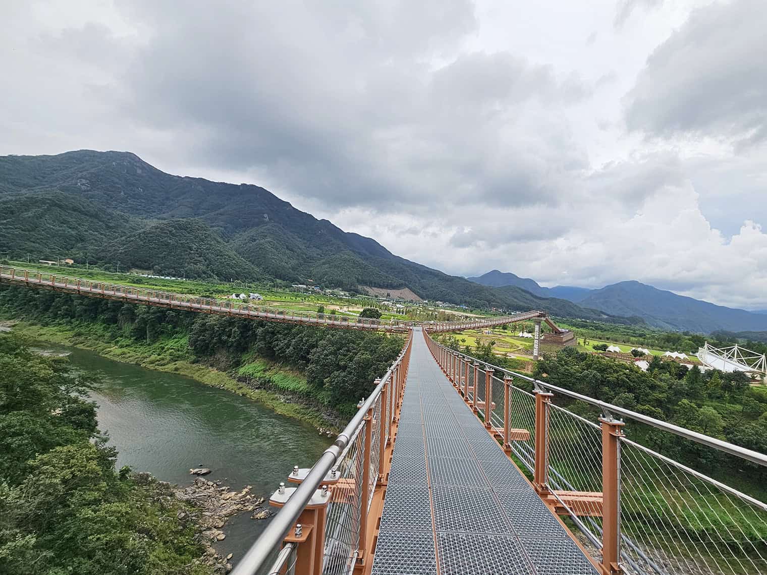 나무데크로 만들어져 있고 중간 중간에 유리로 강물을 바라볼 수 있어 짜릿함을 더해주고, 특히 맑은 날 하늘과 물이 맞닿아 있는 풍경은 꼭 한 번 직접 보길 추천 드려요.
