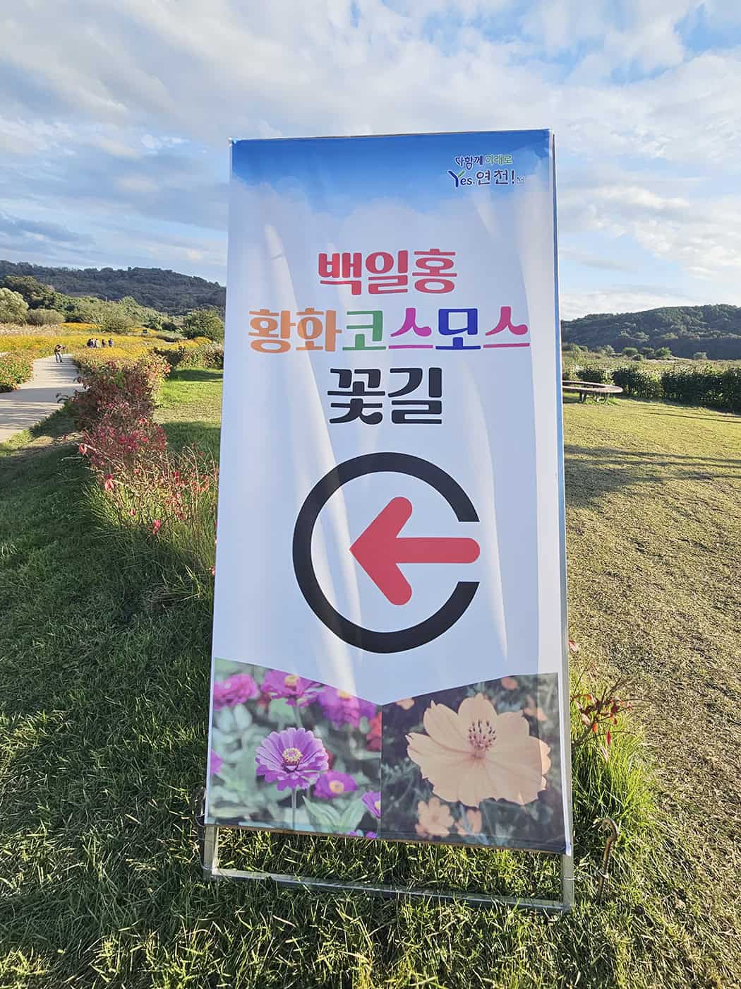 동선은 입구 표지석에서 왼쪽 꽃길로 진입해 백일홍 라인→댑싸리 군락 중심 고랑→그네 포토존→아스타 밭→전망 계단 순으로 돌면 돌아 나오는 길이 꼬이지 않을 것 같아요. 연천 가볼만한 곳을 찾는다면 이 루트가 가장 효율적이라고 생각됩니다.
