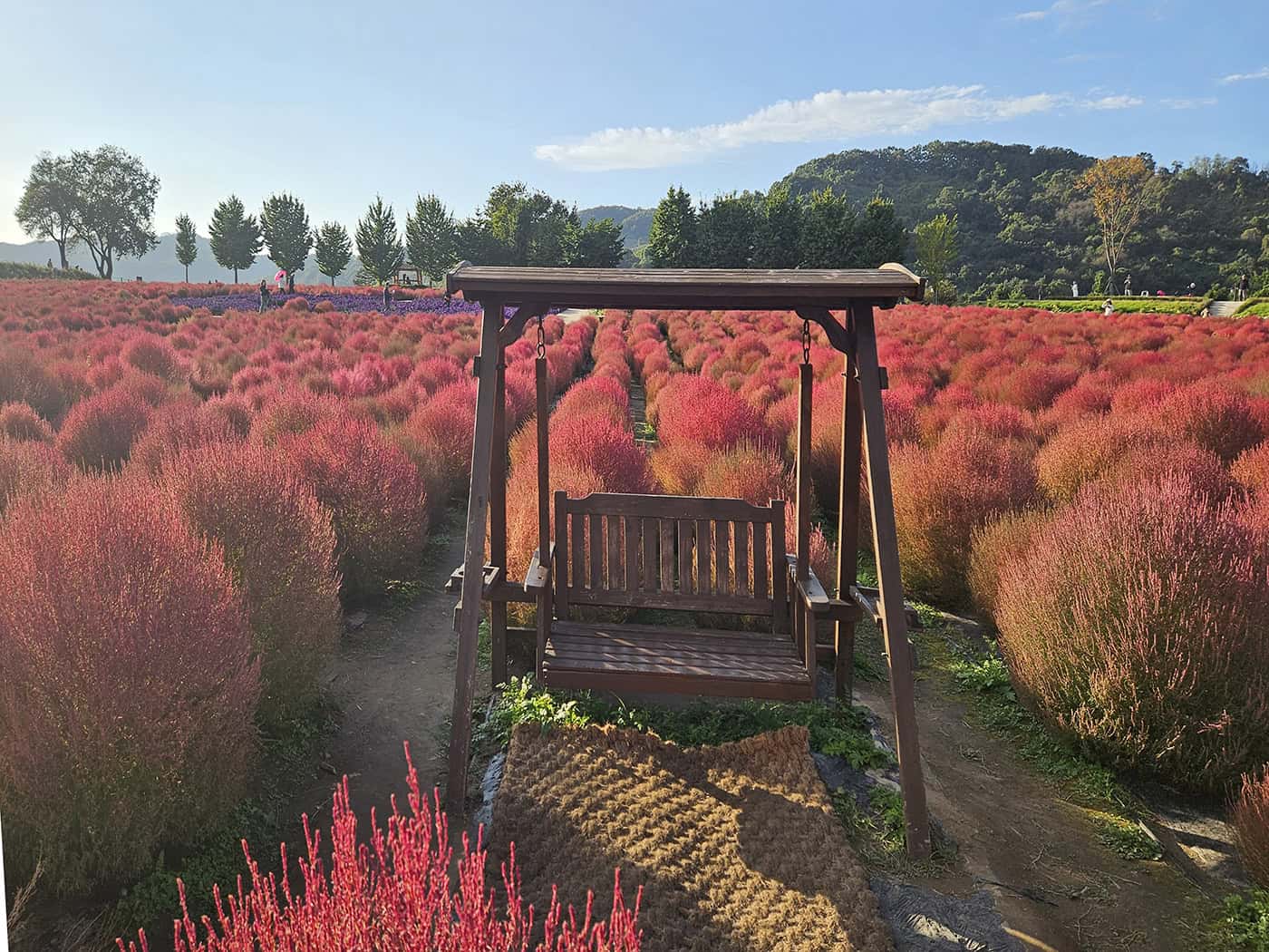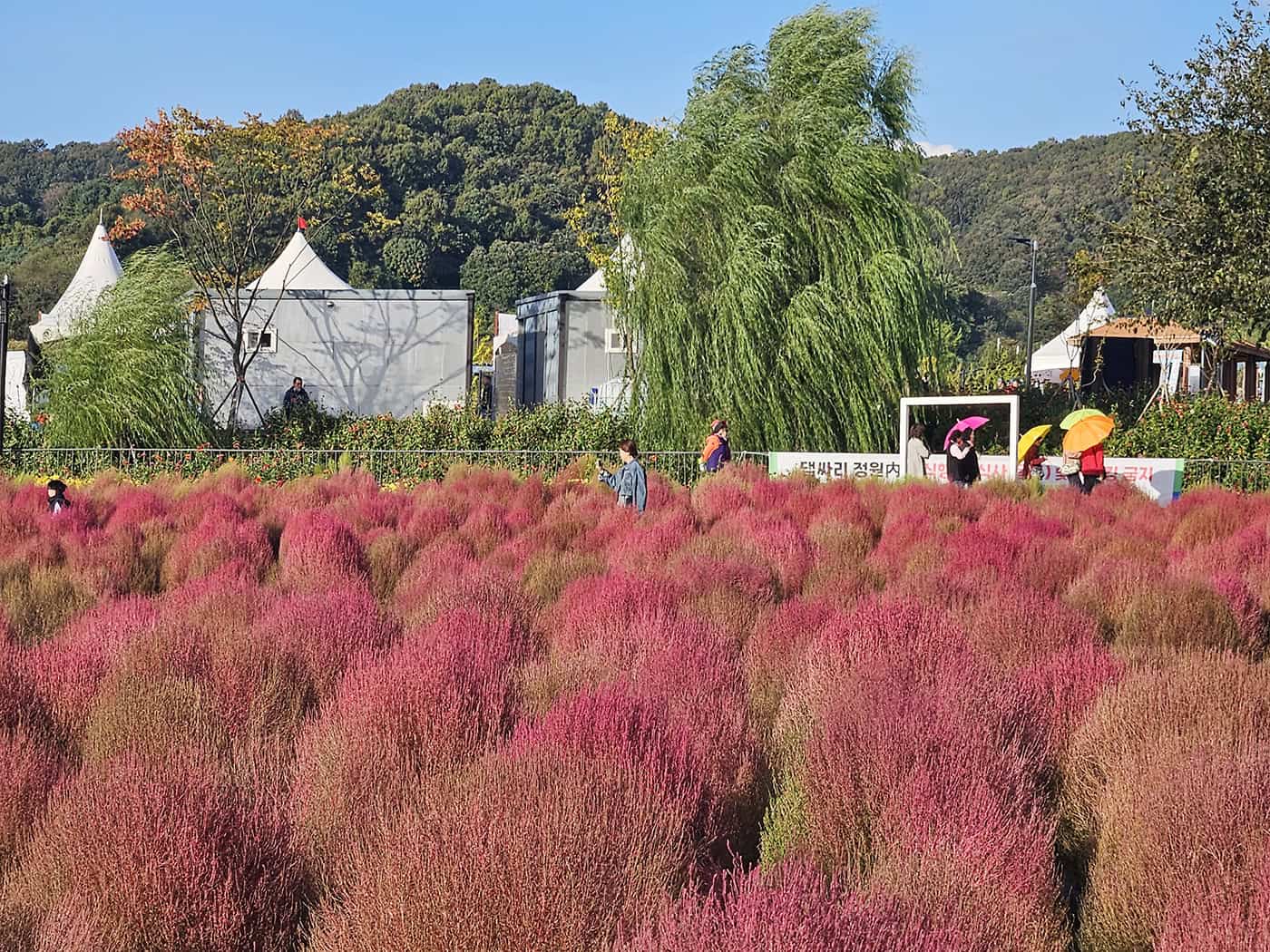 색이 가장 예쁘게 보인 시간은 오후 4시부터 해 질 녘까지였어요. 역광을 이용하면 분홍 댑싸리의 털결이 빛나고, 측광을 맞추면 붉은 레이어가 살아나요. 사람 없는 컷을 원하면 주말은 개장 직후, 평일은 3시 전후가 적당할 것 같아요.