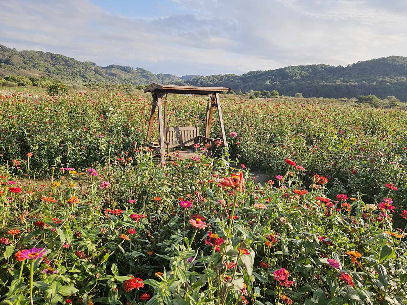 저는 그네 포토존에서 역광으로 한 컷, 그리고 군락 끝에서 사선으로 라인을 살려 담았는데, 연천 임진강댑싸리정원 특유의 입체감이 확 살더라고요. 이어지는 꽃밭에서도 분위기가 달라져요. 분홍 댑싸리와 백일홍의 대비가 사진 맛을 올려줬어요.