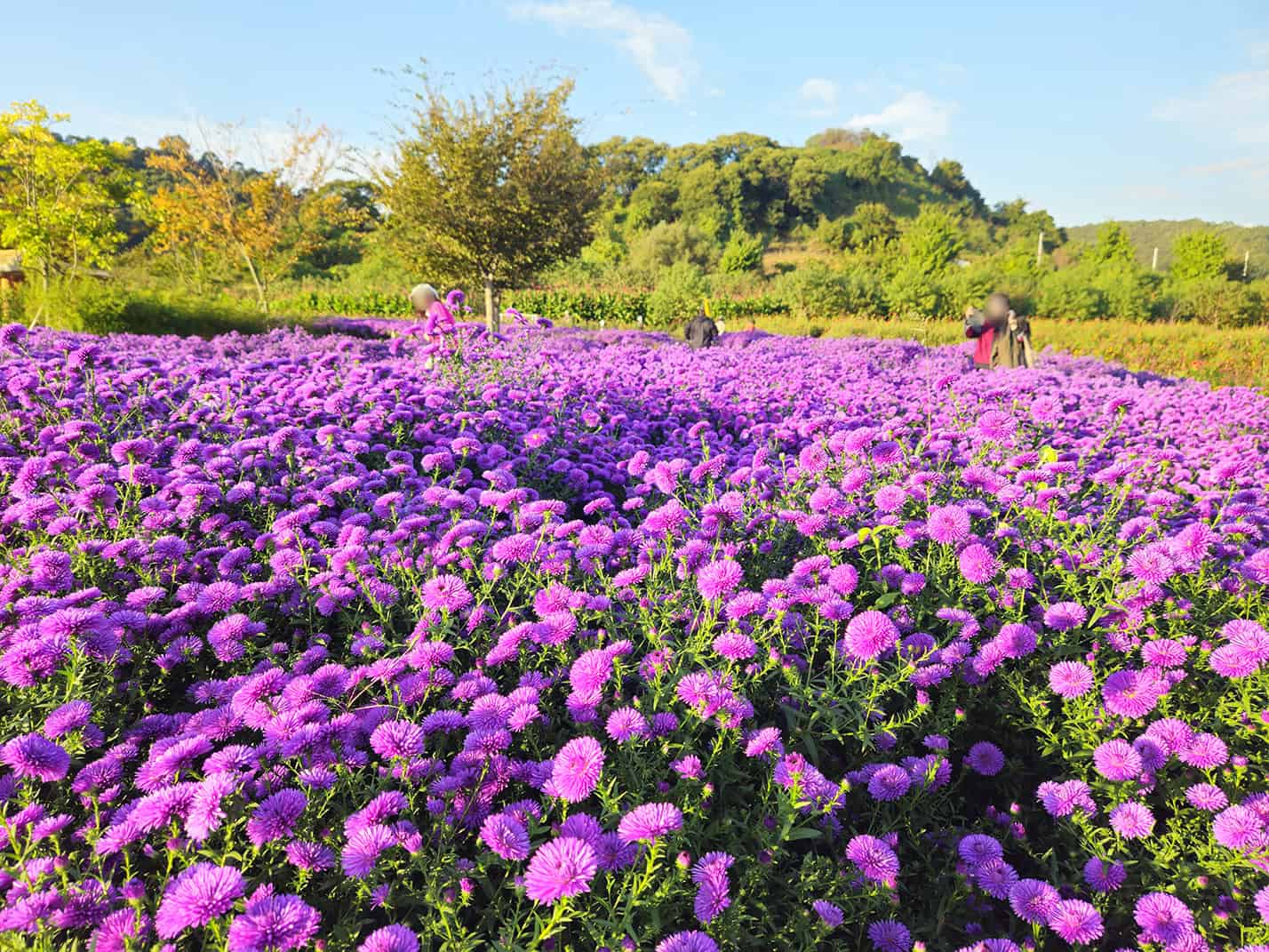 쉼터와 벤치도 중간 중간 잘 놓여 있어 아이와 동행해도 피곤함을 느끼지 못할 정도랍니다. 중앙 언덕 표지 조형물은 인증샷 포인트. 뒤쪽으로 돌아서면 보랏빛 아스타가 바다처럼 펼쳐져 또 다른 계절을 만난 느낌이에요.