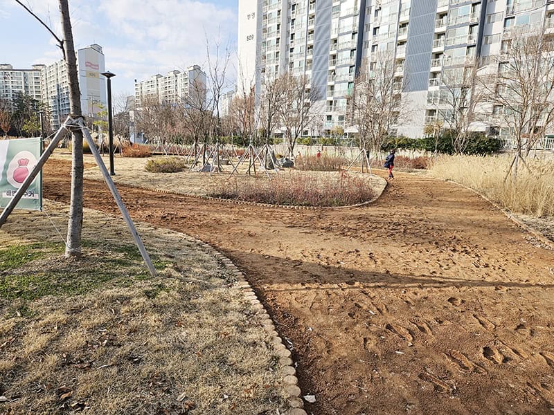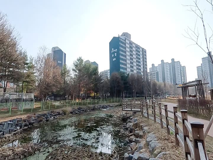 아이들이 좋아할 잔디섬과 포토 오브제가 곳곳에 있어 가족 산책 코스로도 만족스럽답니다. 공원 가장자리 외곽을 따라 걸으면 주변 아파트와 공원이 자연스럽게 이어져 경관이 꽤 시원합니다.