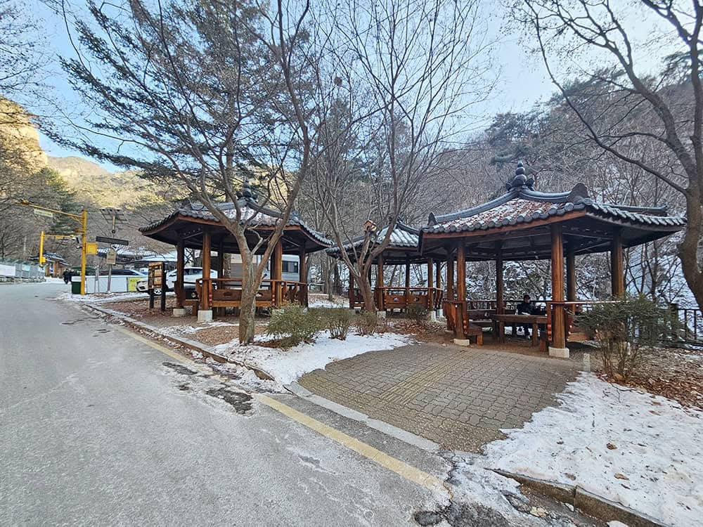 소요산 주차장은 규모가 비교적 넉넉한 편이라 주말에도 이용하기 수월한 편이에요. 주차장 끝쪽에는 매표소와 함께 간단히 쉬어갈 수 있는 공간들이 모여 있답니다.