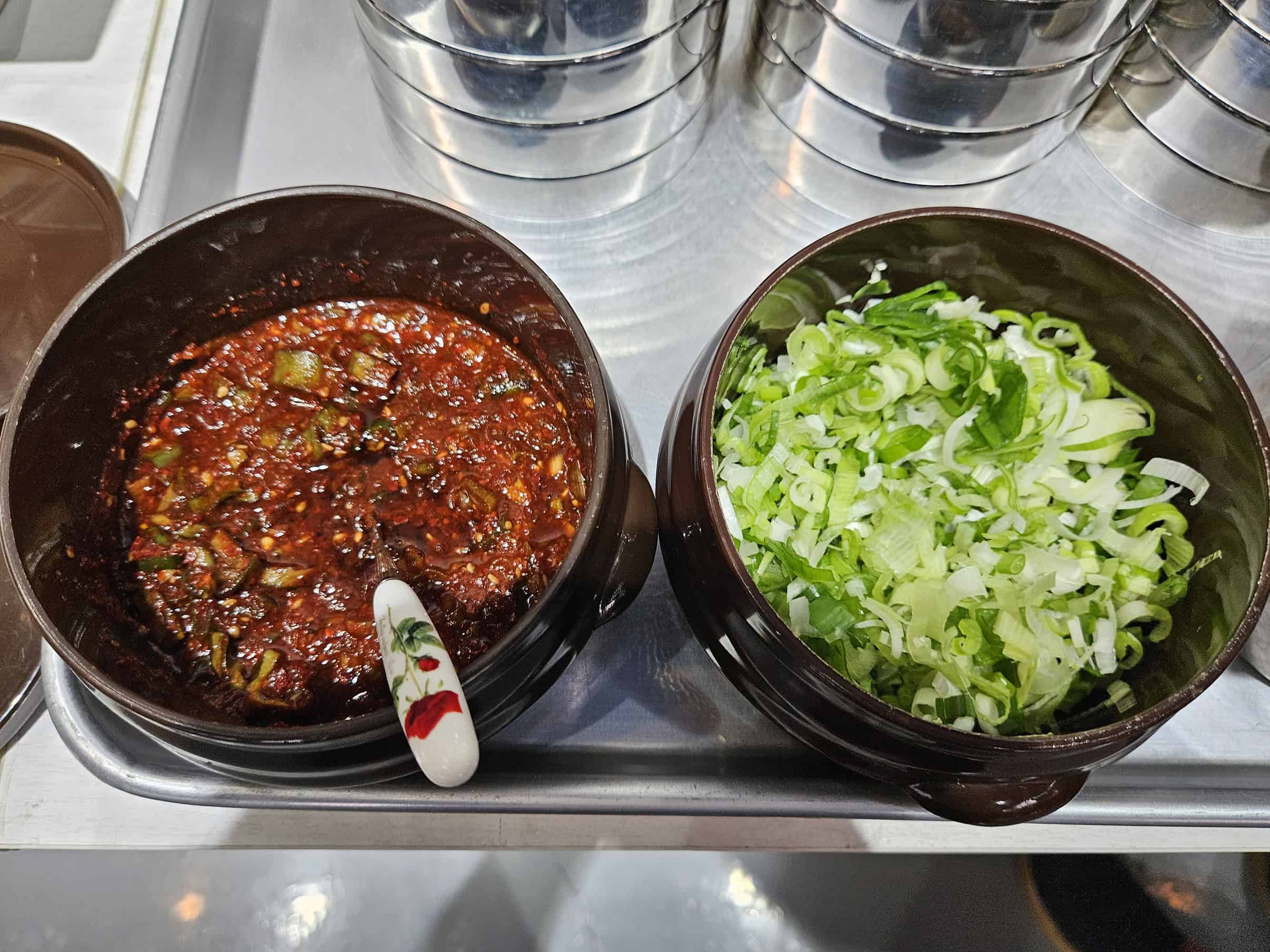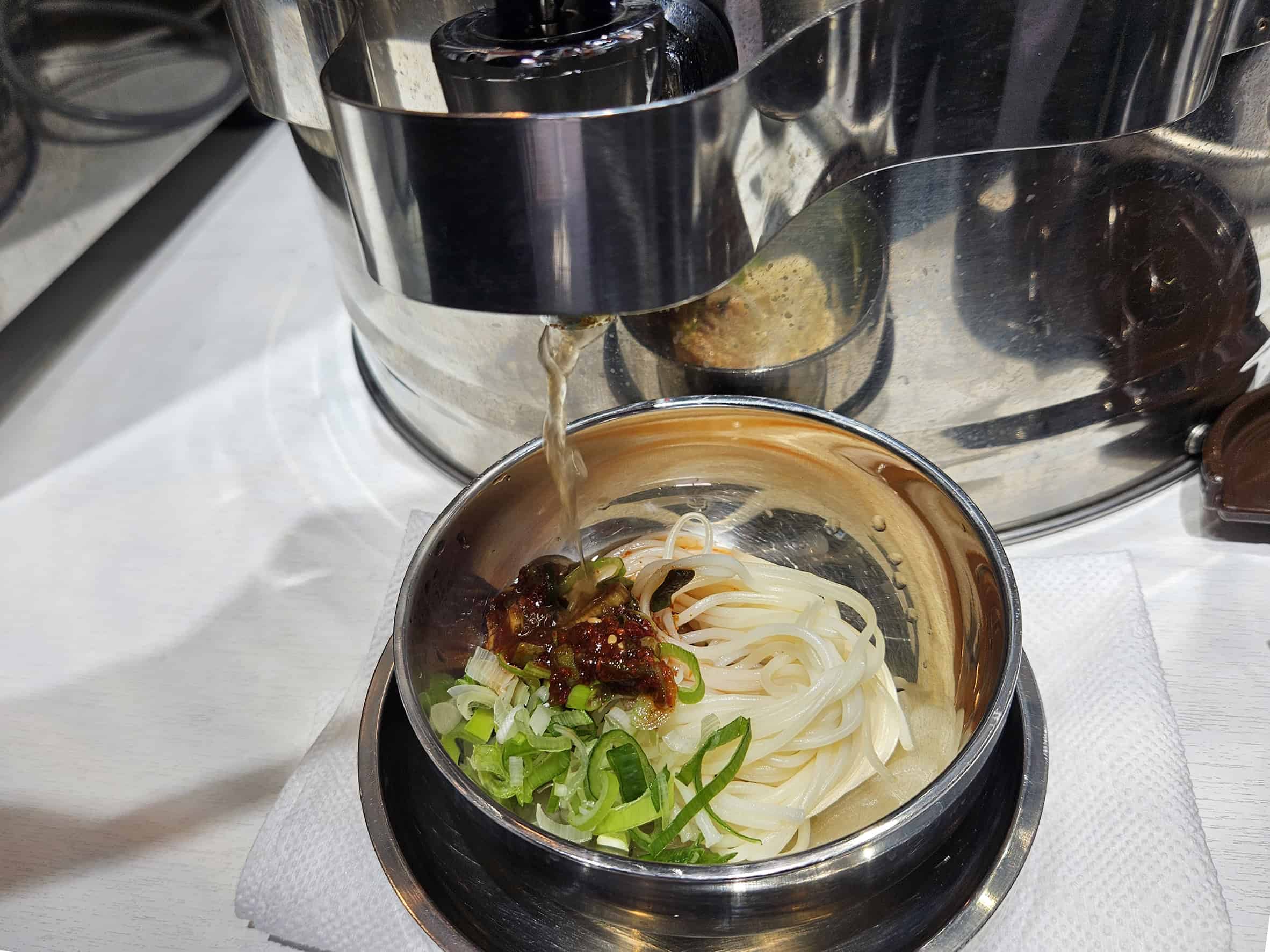 사진에서 보실 수 있듯이 잔치국수는 셀프로 조리가 가능한데, 이게 의외로 재미있고 맛도 좋았답니다. 특히 기본 세팅 재료부터 진짜 정갈해서 보기만 해도 기분이 좋아지는 비주얼이에요.