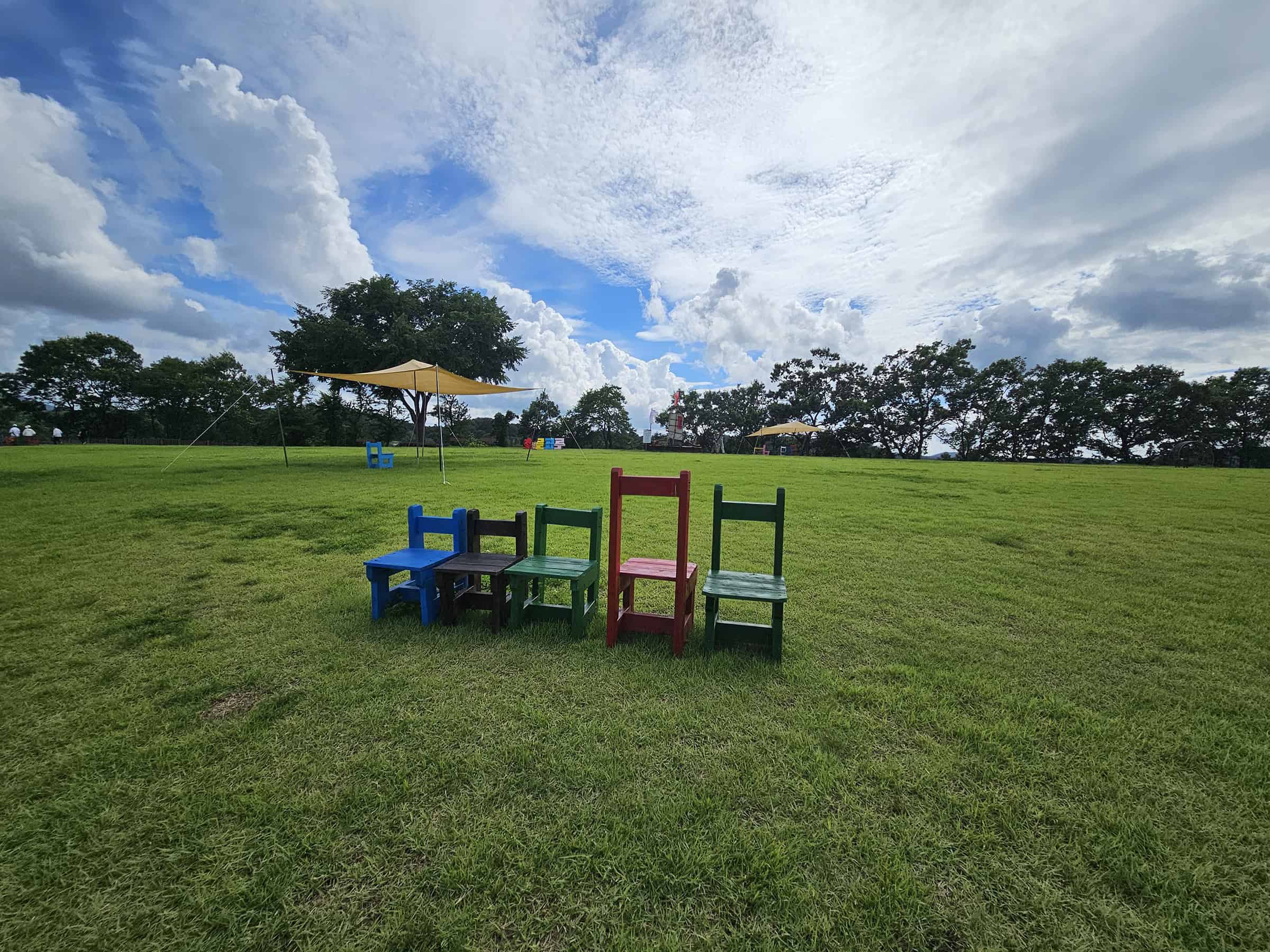 해바라기 밭 한쪽에는 나무로 만들어진 작은 벤치와 포토존이 마련돼 있었어요. 저는 이곳에서 해바라기 밭을 배경으로 가족들과 사진도 남기고, 잠시 앉아 쉬면서 바람을 느껴봤답니다.