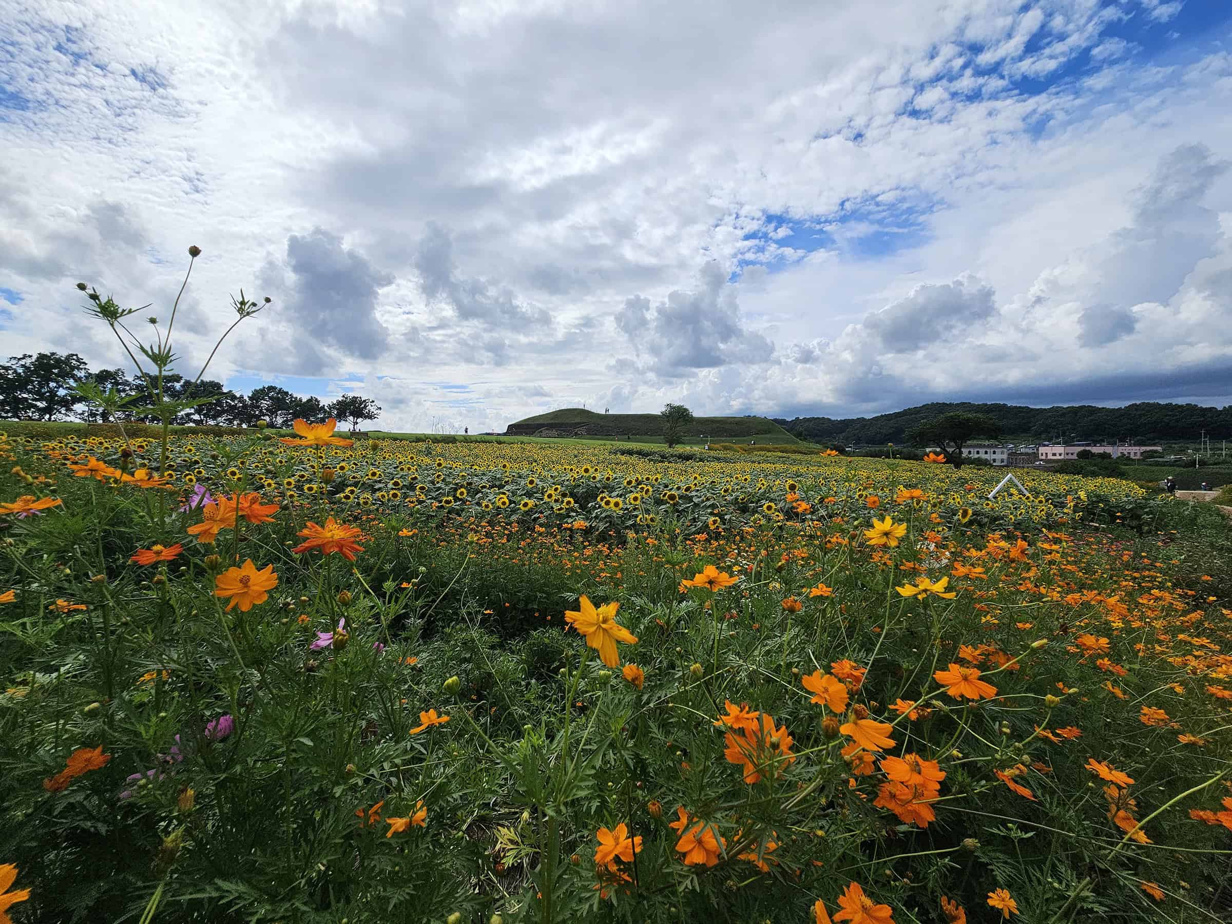 제가 붙인 이름이지만 정말 '해바라기 천국'이라고 부를 만한 곳인데요. 초록의 자연 속, 노란 해바라기가 끝없이 펼쳐진 풍경과 고구려 역사까지 살짝 엿볼 수 있는 독특한 매력이 가득한 곳이었답니다.