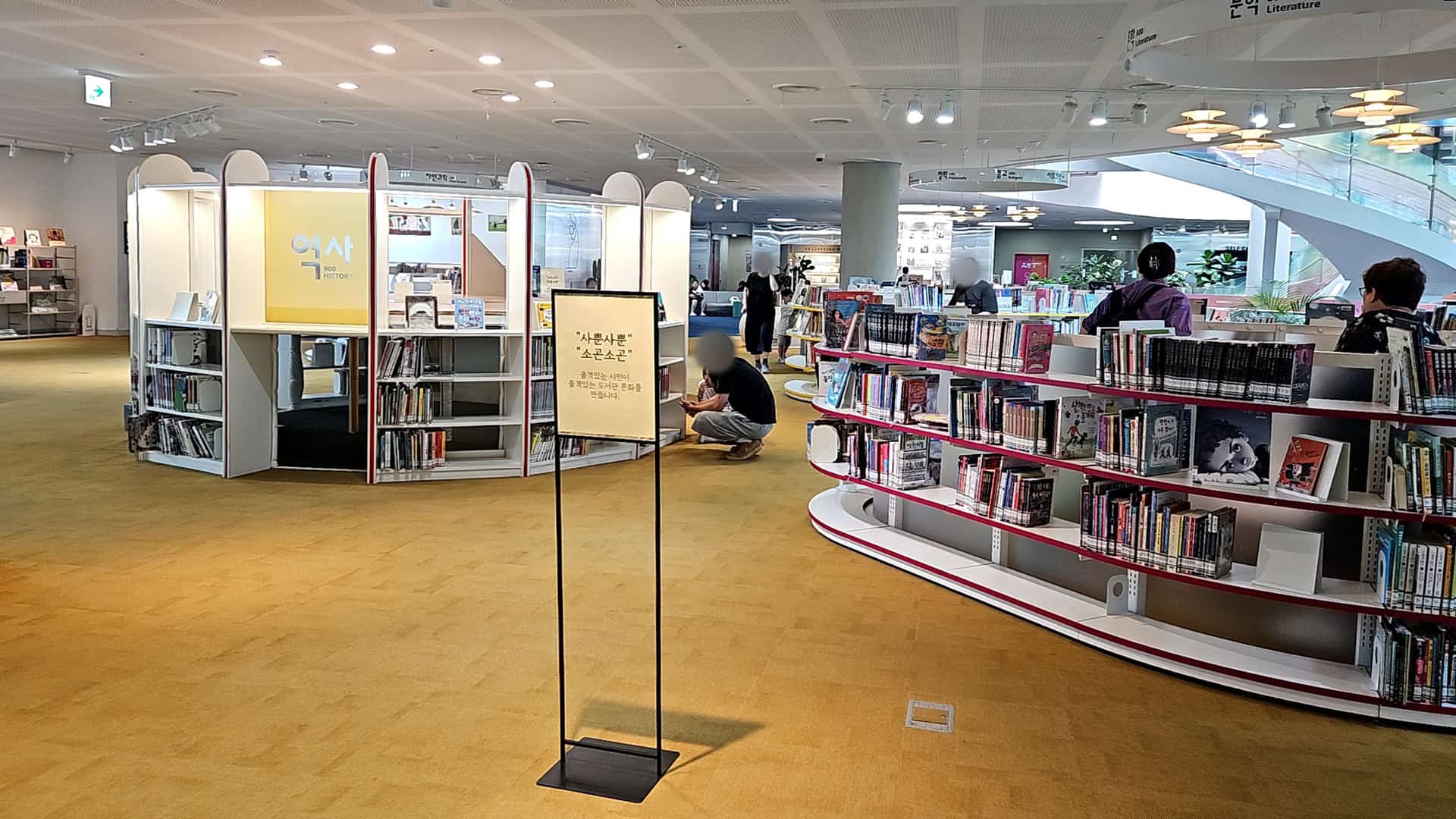 내부로 들어가면 쾌적한 공기와 더불어 도서관 특유의 아늑함이 퍼지는데, 들어서는 순간 더위는 싹 잊혀졌어요. 로비 쪽엔 각종 안내판과 각 층 안내도가 잘 비치돼 있어서 처음 방문한 사람도 전혀 헤매지 않을 거예요.