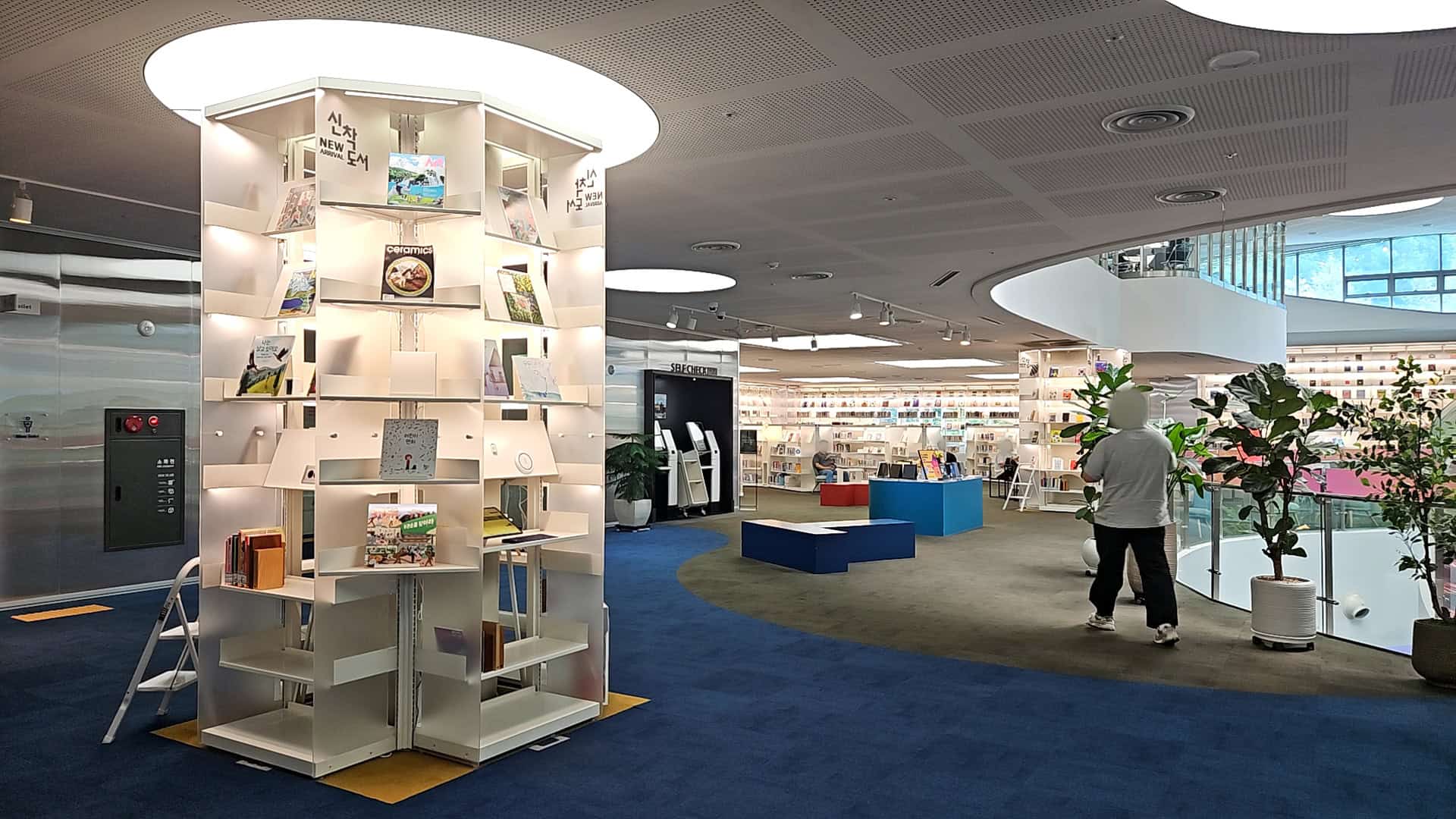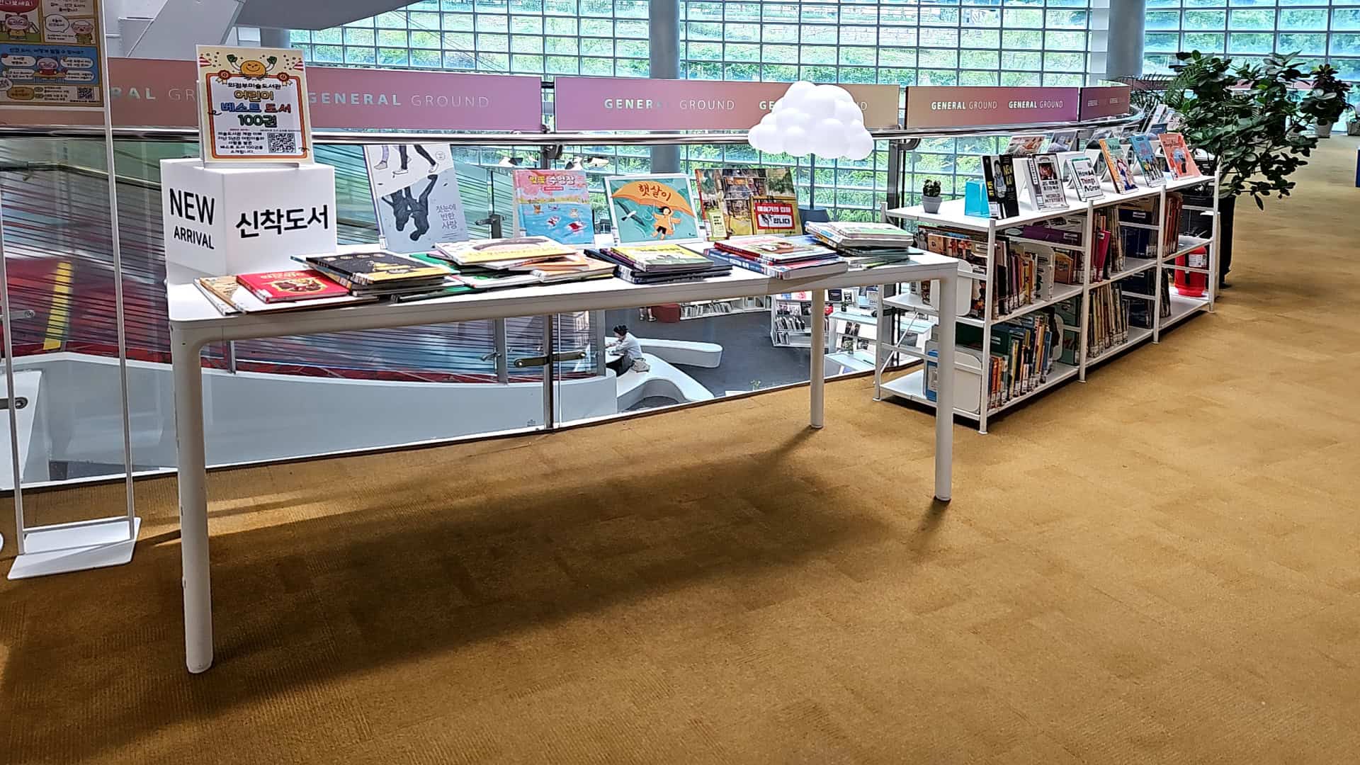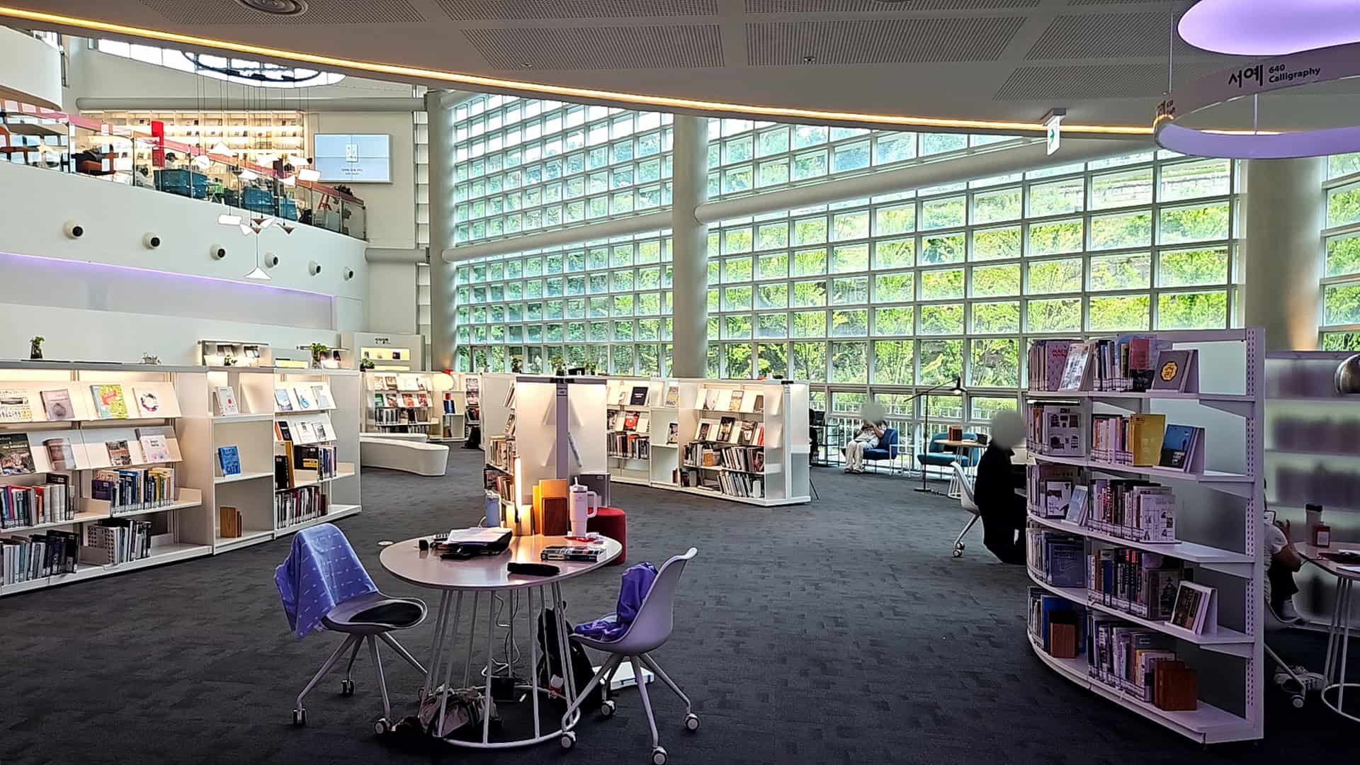 내부로 들어가면 쾌적한 공기와 더불어 도서관 특유의 아늑함이 퍼지는데, 들어서는 순간 더위는 싹 잊혀졌어요. 로비 쪽엔 각종 안내판과 각 층 안내도가 잘 비치돼 있어서 처음 방문한 사람도 전혀 헤매지 않을 거예요.