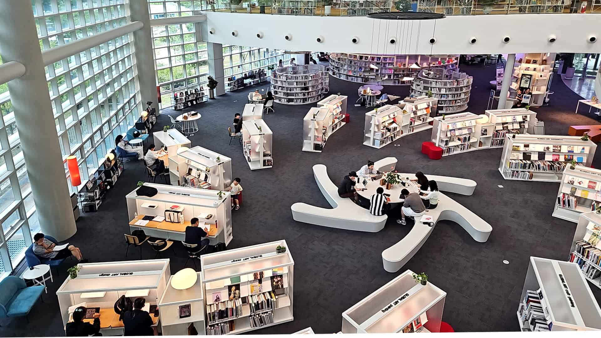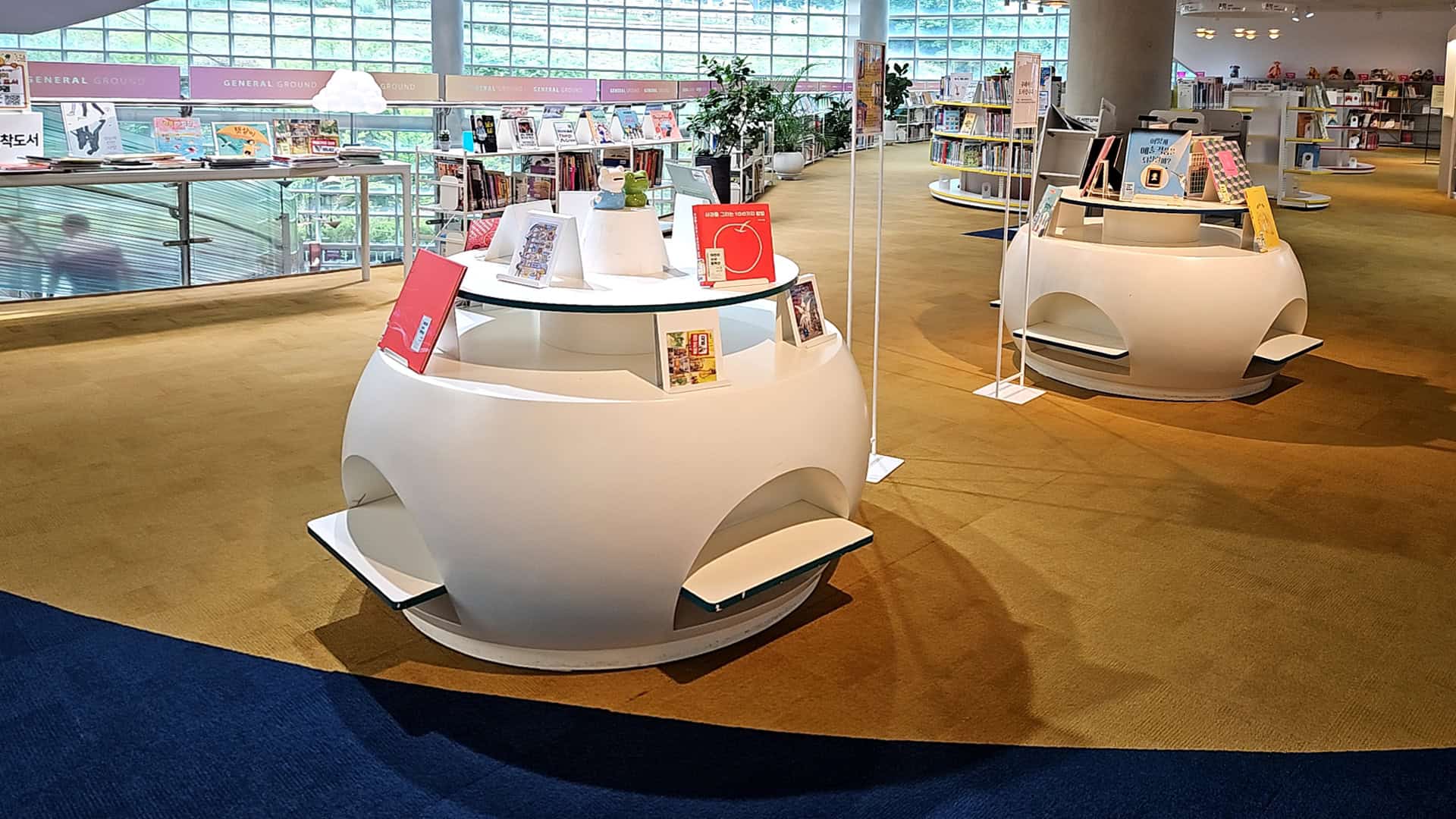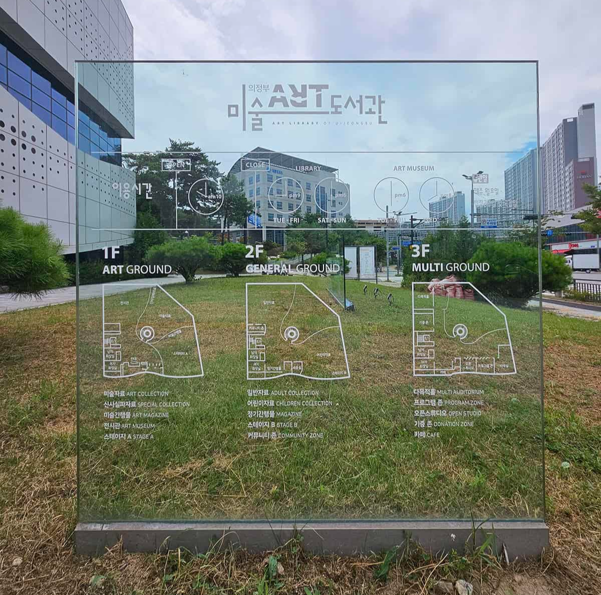 ▶ 1층: [ART GROUND]조용히 책을 읽거나 공부에 몰두할 수 있는 열람실. 글로벌 아트(건축, 패션, 예술일반, 공예, 회화, 디자인, 사진, 문학, 호크니 빅 북) 미술자료(조각, 공예, 서예, 회화, 사진, 음악, 공연, 스포츠, 건축, 토목, 신사실파, 예술정기간행물, 예술 사서 컬렉션) 대출, 상호대차, 신착도서, 반납 등으로 잘 꾸며져 있어요.
