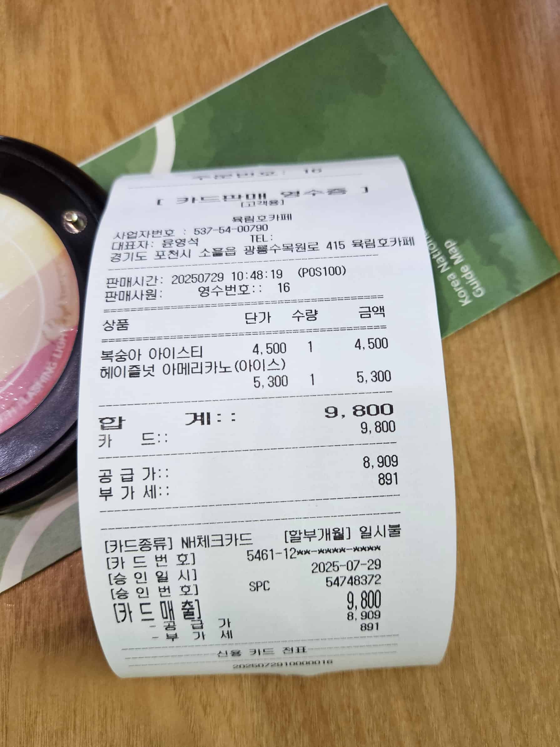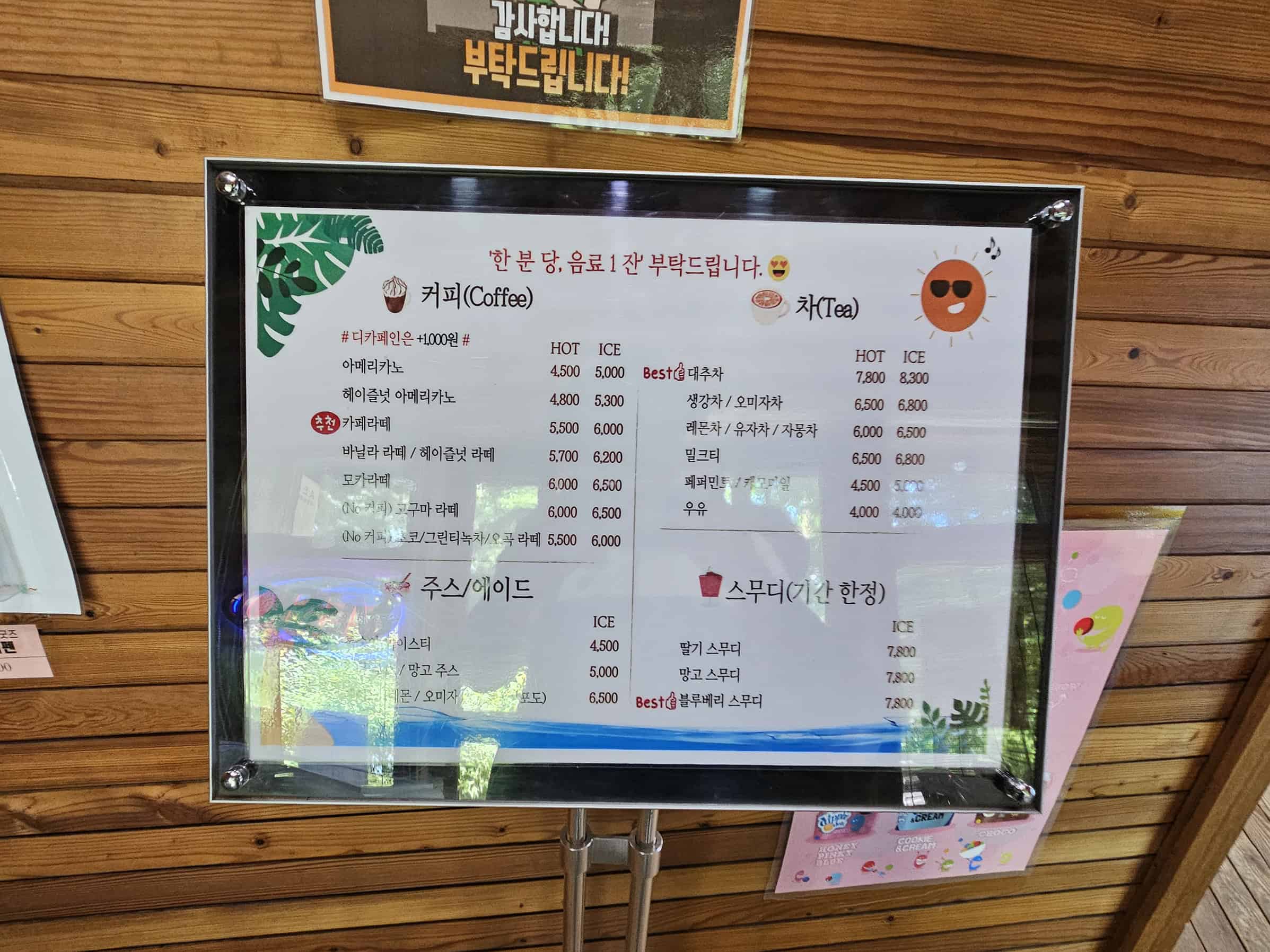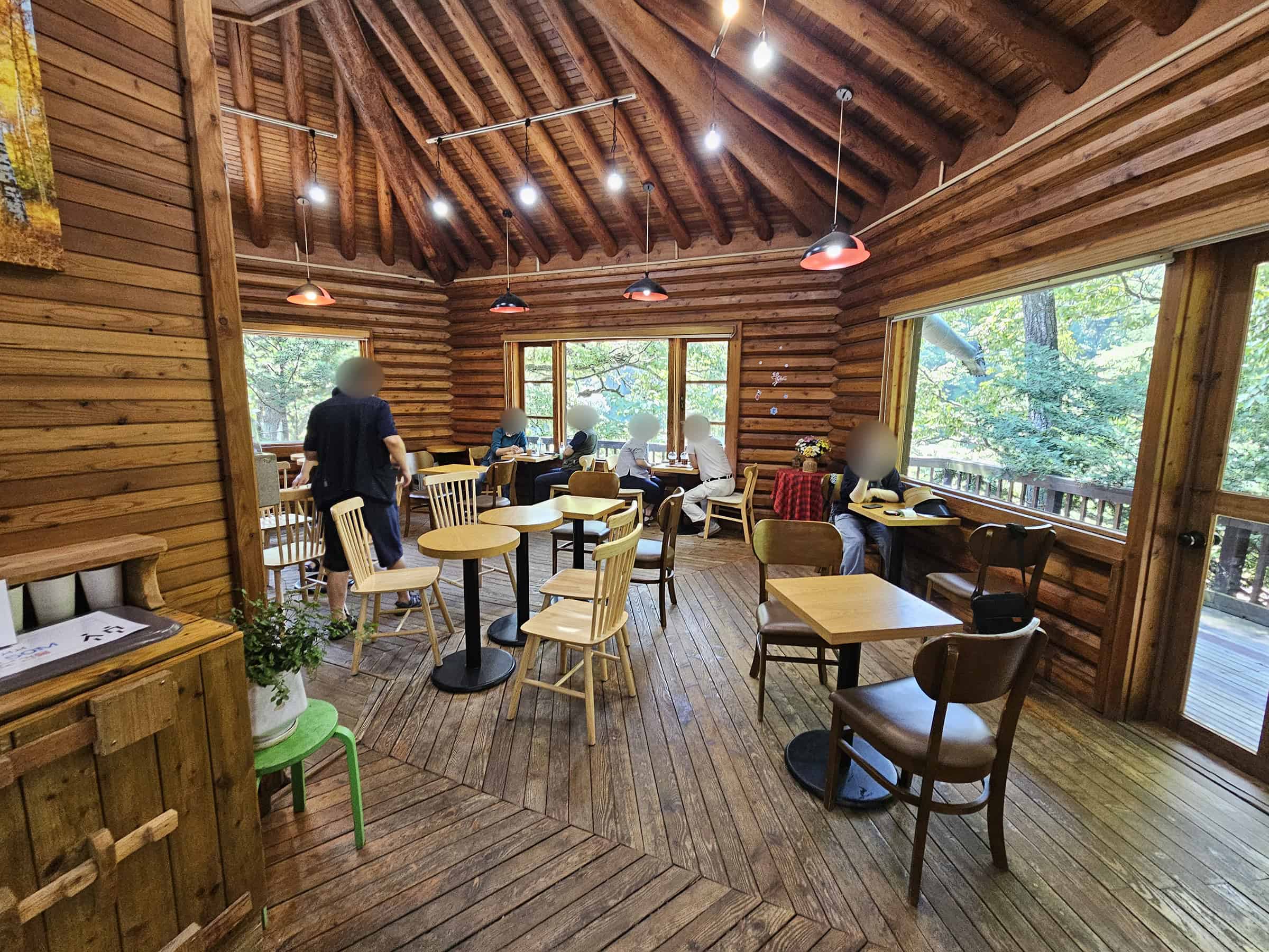 이곳은 상쾌한 숲 바람을 맞으며 한적하게 음료를 즐길 수 있는 공간이에요. 카페 앞에 놓인 테이블에 앉아 시원한 음료 한 잔을 마시는 시간은, 그날의 피로를 잊기 충분했어요.