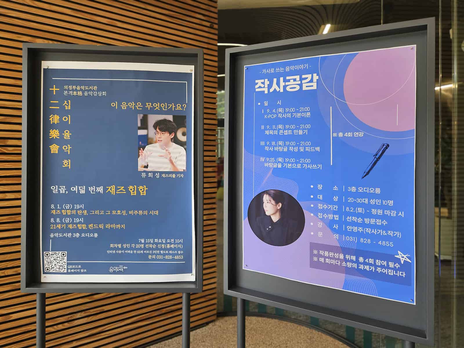 의정부 음악도서관 입구에 닿자마자 느껴지는 건 고요한 차분함과 깔끔한 외관이에요. 입구에 들어서자 시원한 에어컨 바람과 동시에 잔잔한 음악이 흘러나오는데, '아- 여기가 힐링이다!' 싶은 기분이 절로 들어요.