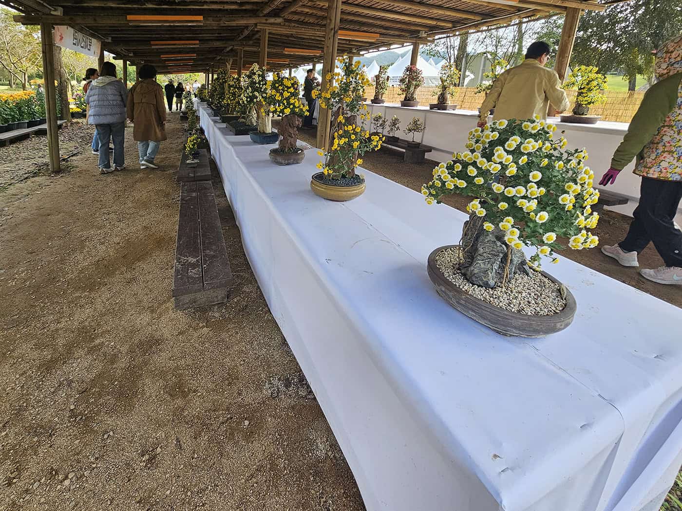 입구에서 오른쪽 산책로를 타고 테마정원→국화 터널→조형 광장→분재국 전시 순으로 돌면 동선이 자연스러워요. 곳곳에 의자와 그늘이 있어 아이 동반도 쉬엄쉬엄 걷기 좋고, 부지가 넓어 사람이 많아도 붐빔이 덜하답니다.