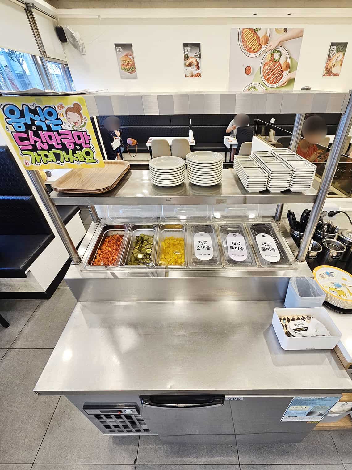 식사하러 왔을 때 가장 좋았던 점 중 하나는 바로 셀프바였어요. 따끈한 크림수프부터 시작해 후식으로 커피와 아이스크림을 자유롭게 즐길 수 있었죠. 깔끔하게 정리되어 있는 셀프바 덕분에 더 편안하게 식사를 마칠 수 있었답니다.