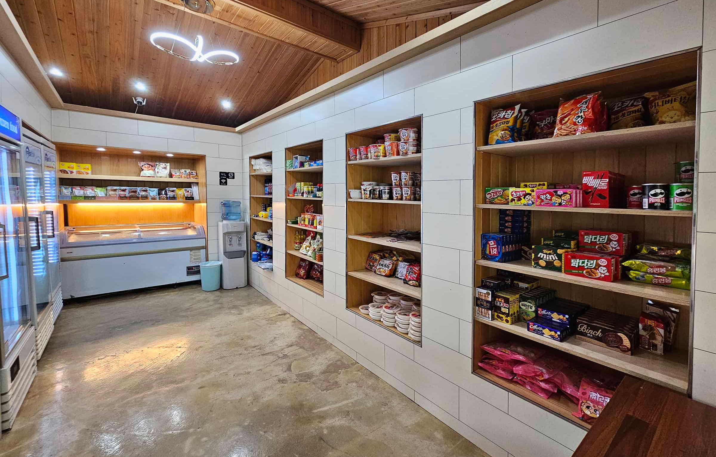 셋, 매점이 우리가 흔히 보던 일반 마트와 다를바 없이 아주 훌륭하게 잘 꾸며져 있으며, 여러 가지 물건들이 다양하게 구비되어있으며, 무인으로 이용하게끔 결제시스템도 잘 말들어져 있어요.