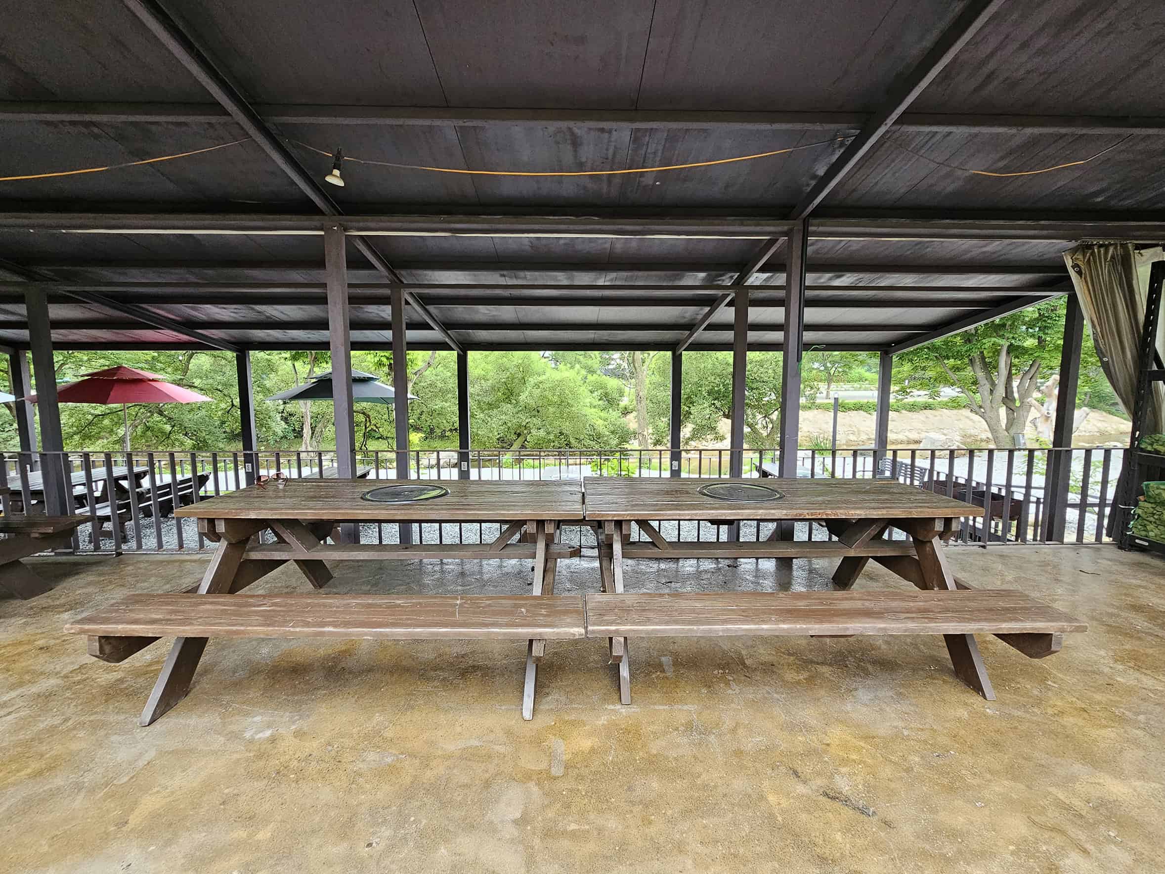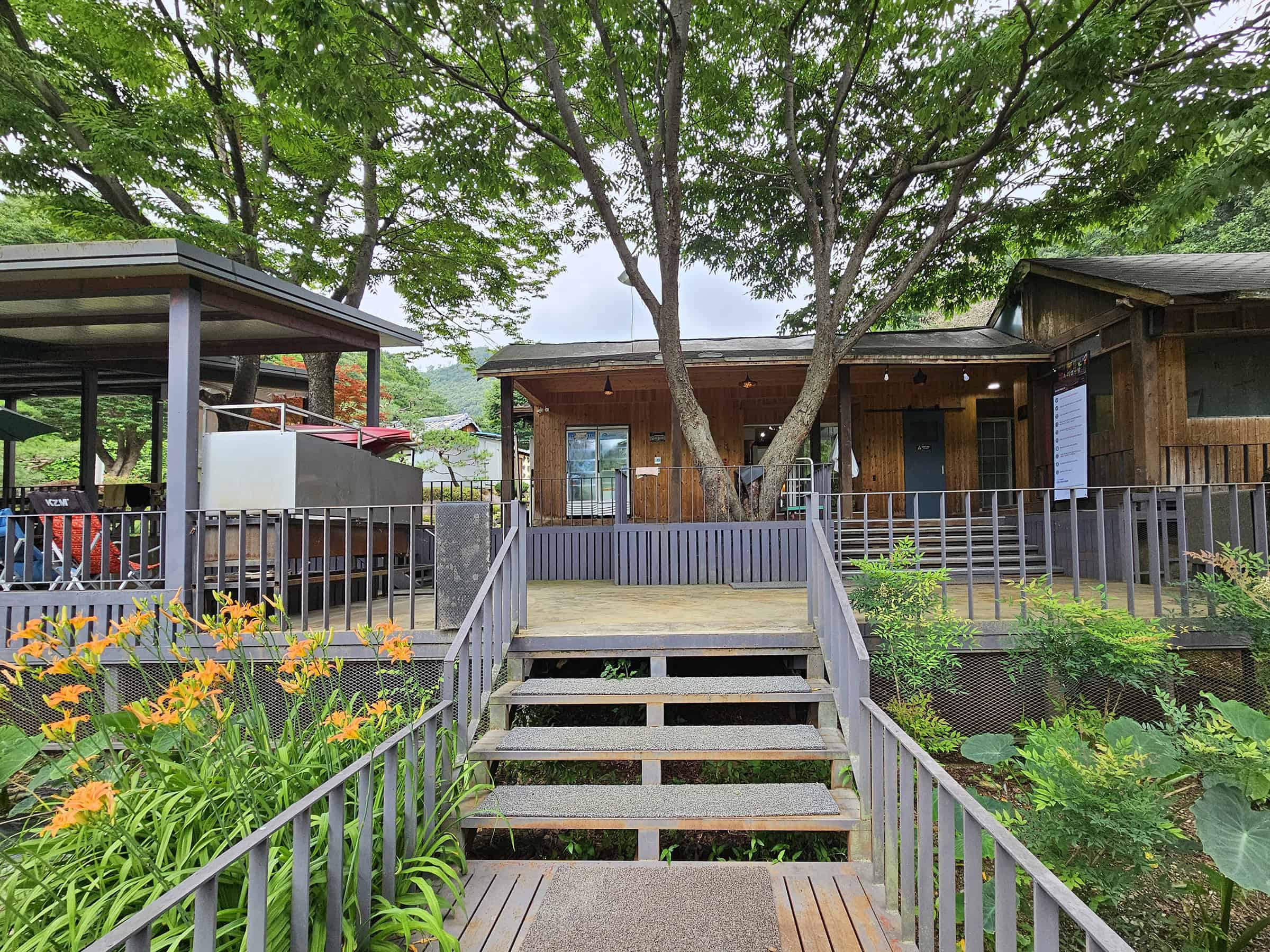 세 번째는 가족 단위 방문객에게 특히 추천하고 싶은 계곡물 바로 앞 데크. 아이들이 주변에서 물놀이를 할 때 시야에 두기 정말 좋아요.
