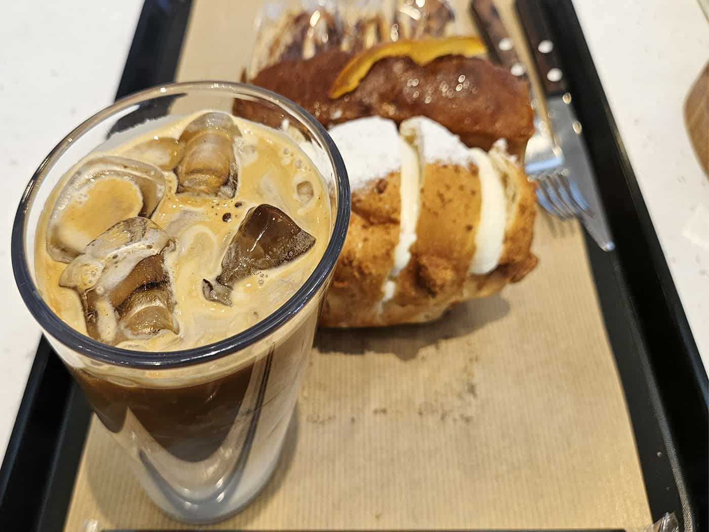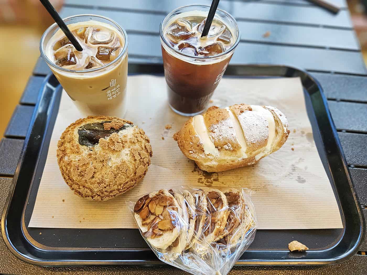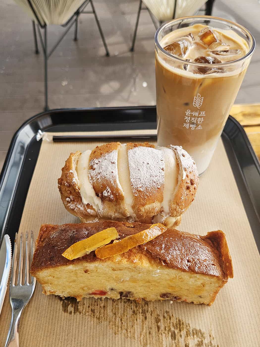저희는 아메리카노, 카페라떼와 함께 블루베리 찰떡, 쫀득쫀득 흑임자, 달콤 크림빵, 후르츠 파운드를 골랐답니다. 아메리카노는 산미가 가볍고 끝맛이 깔끔해 빵과 잘 맞았고, 라떼는 우유와 에스프레소 밸런스가 좋았어요.
