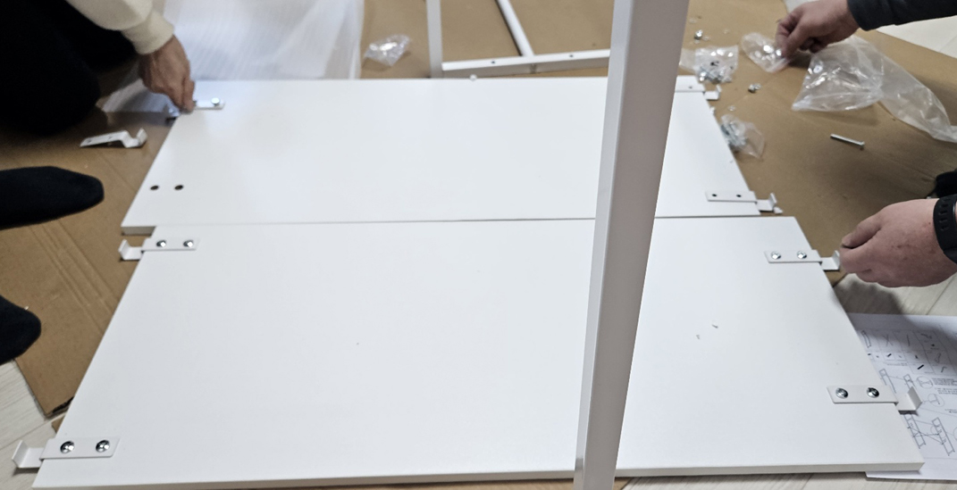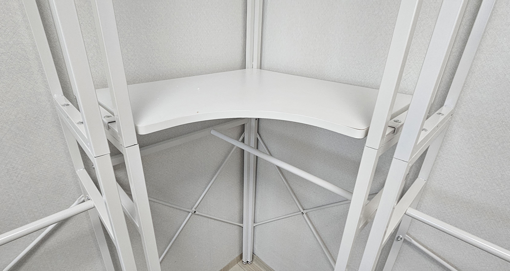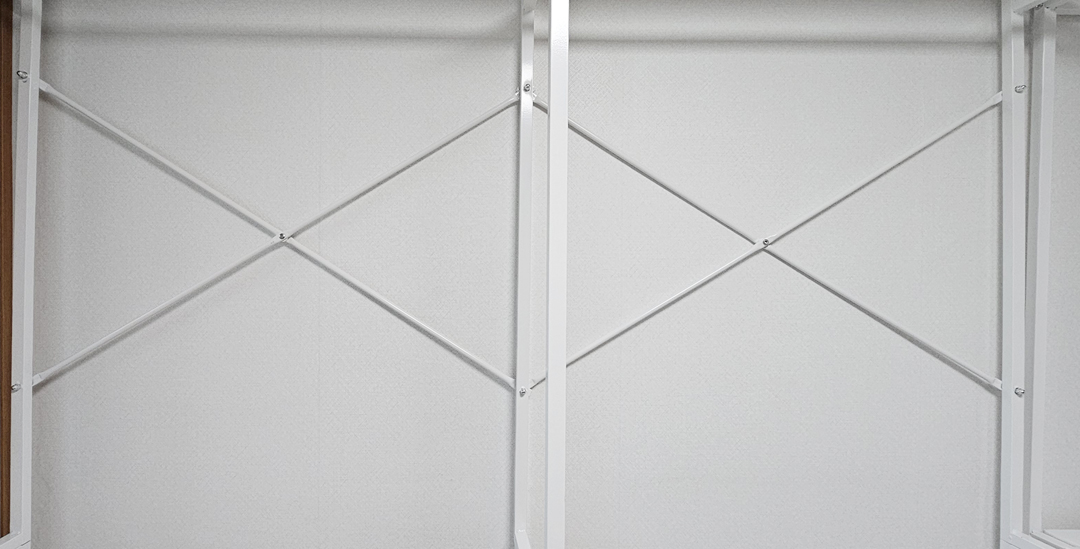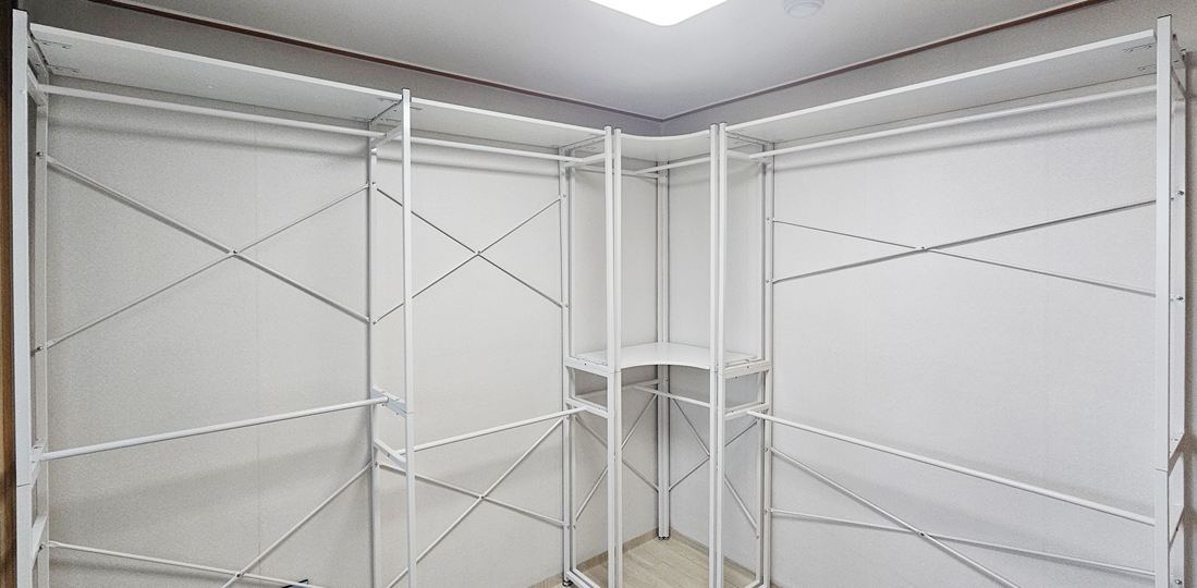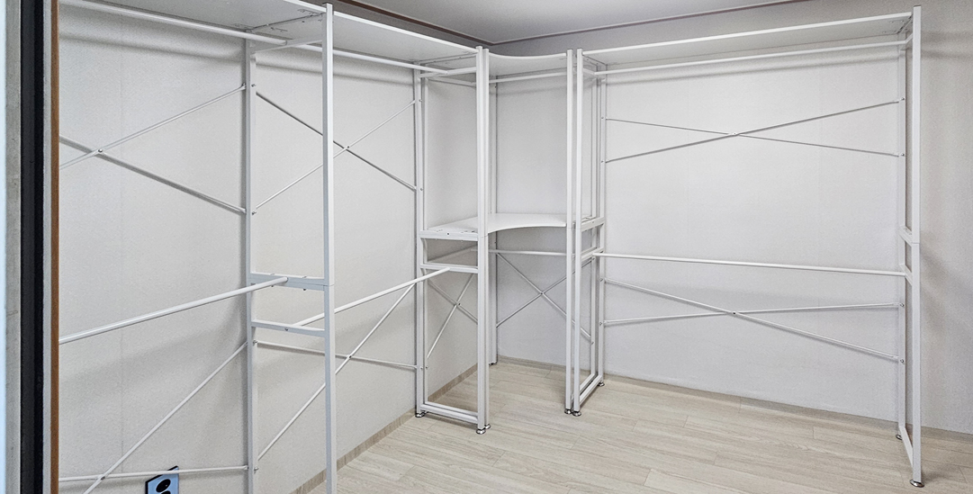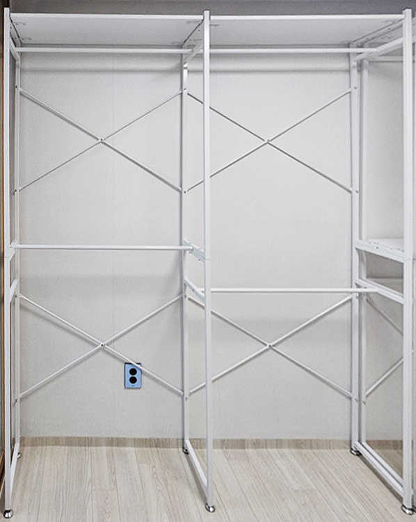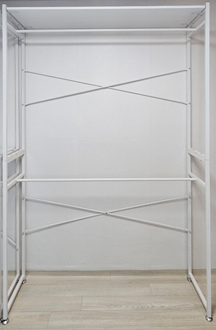 하비티 시스템 행거의 가장 큰 매력 중 하나는 설치가 무척 간단하다는 점이에요. 무타공 방식으로, 벽이나 천장을 손상시키지 않고도 쉽게 설치할 수 있었어요. 시간을 아끼고 싶어하는 요즘 라이프스타일과 딱 맞는 선택이었죠. 실제 설치는 하루도 채 걸리지 않았어요. 설계도부터 준비해서 본격적으로 설치에 들어간 시간은 약 2시간 정도? 기둥과 선반 고정을 완료하자마자 전체적인 틀이 아주 견고하게 잡히더라고요.