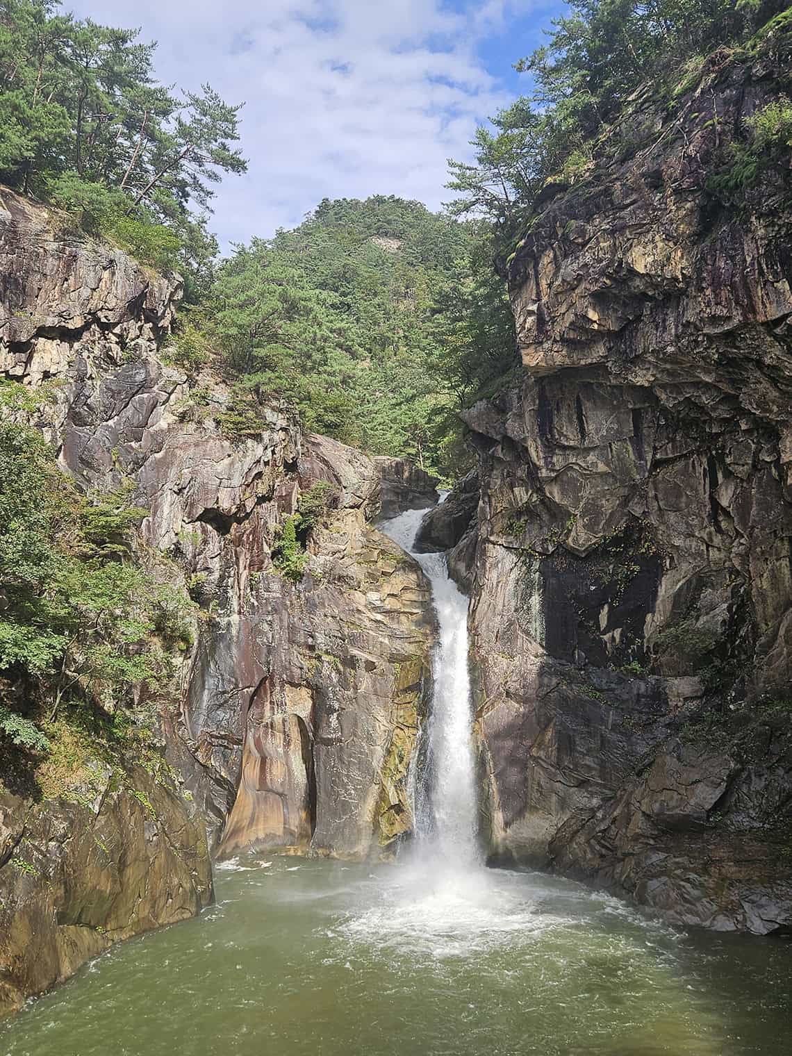 주변의 푸릇푸릇한 나무들과도 참 잘 어울려서 마치 자연의 캔버스같은 느낌을 받았답니다. 시원하게 떨어지는 물소리를 들으니 장시간 운전한 피로가 싹 풀리는 기분이었어요. 이곳이 왜 철원 9경 중에서도 제2경으로 꼽히는지 한눈에 알겠더라고요.