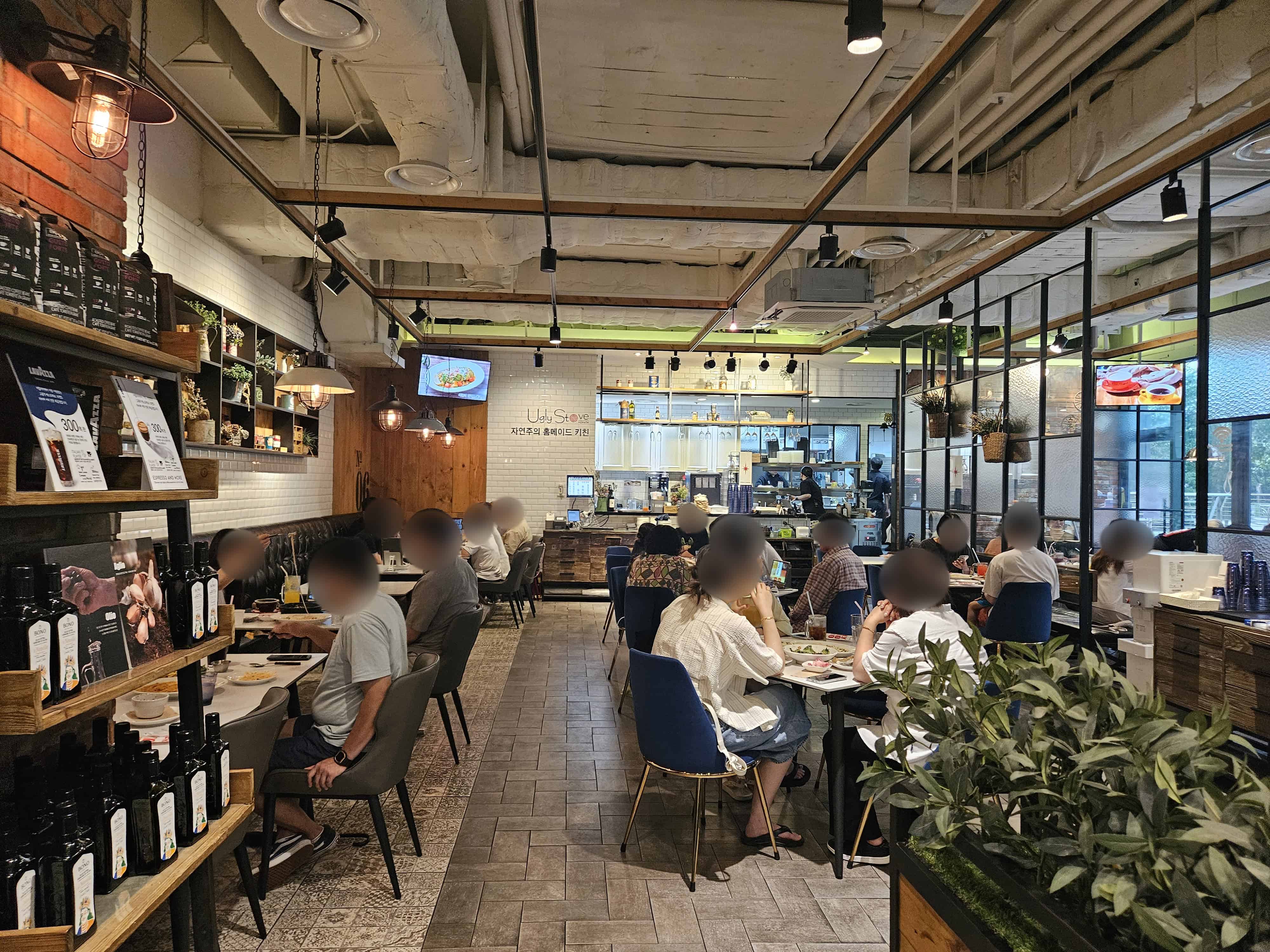 매장 입구부터 풍기는 첫인상이 꽤 좋아요. 유리 통창으로 가득한 인테리어가 특히 눈에 띄는데요, 자연광이 매장을 환하게 밝혀주니 밝고 기분 좋은 느낌이 들었어요.