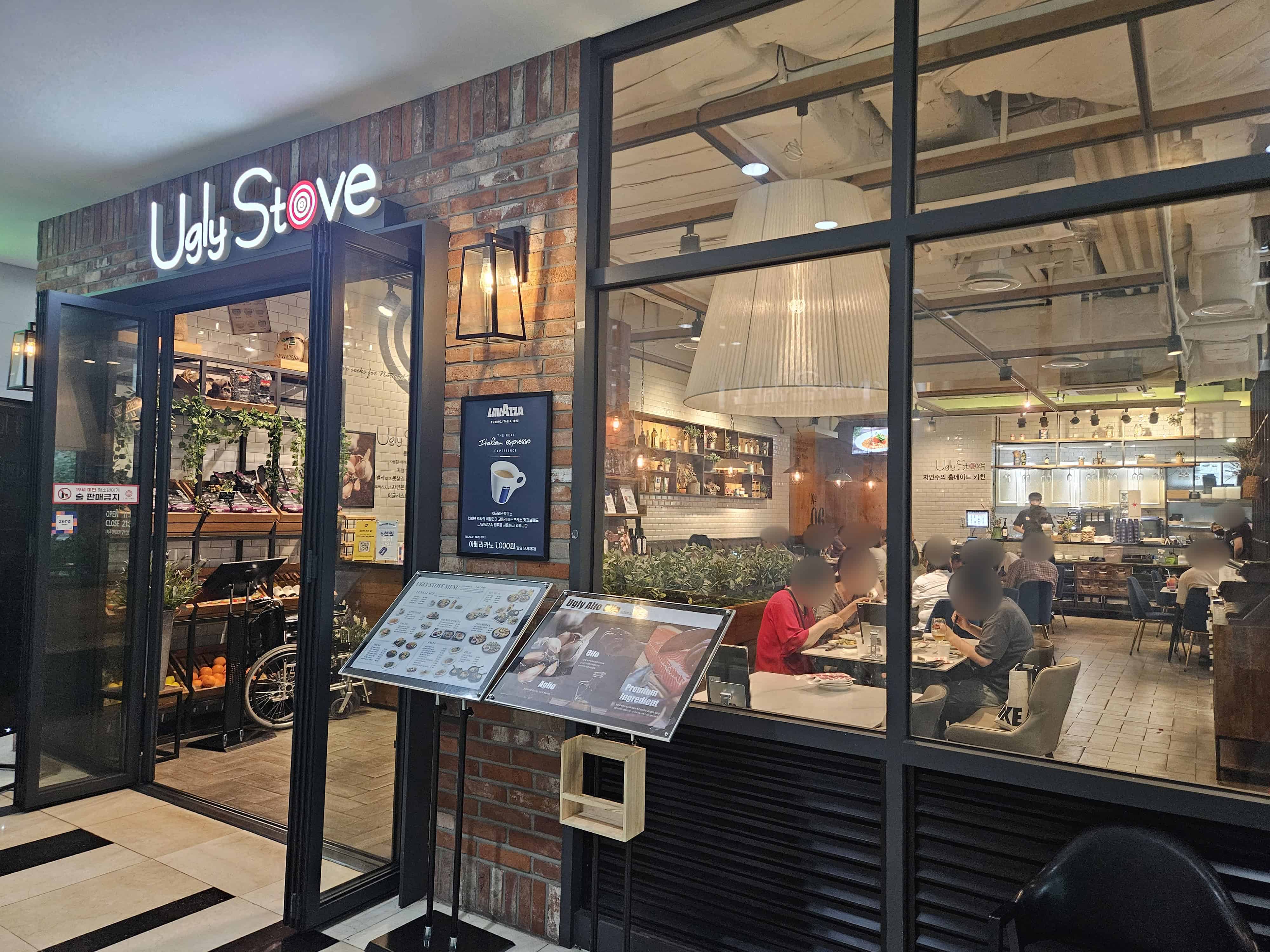 어글리스토브 상봉점은 상봉 CGV 건물 1층에 딱 자리 잡고 있어요. 영화 보러 오신 분들이 쉽게 들를 수 있어서인지 저녁 시간에는 무척 북적이더라고요. 주차는 건물 내 지하 무료주차장에 할 수 있어서 차를 가져오기도 편했어요.