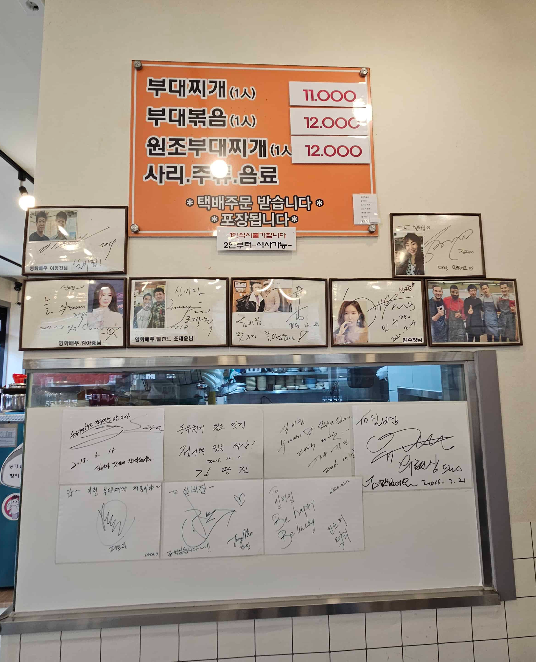 연예인 싸인이 가득하고 방송에도 다수 출연하며 인정받은 맛집이라서 정말 기대가 되었어요. 특히나 부대찌개 좋아하는 사람이라면 주목해야 할 곳입니다! 독특하지만 정감 가득한 그곳의 매력을 지금부터 알려드릴게요. 배고프신 분들 각오하세요.